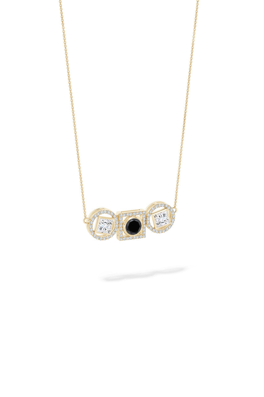 Infinity 14K Gold with Black & White Diamond Three Stone Halo Necklace