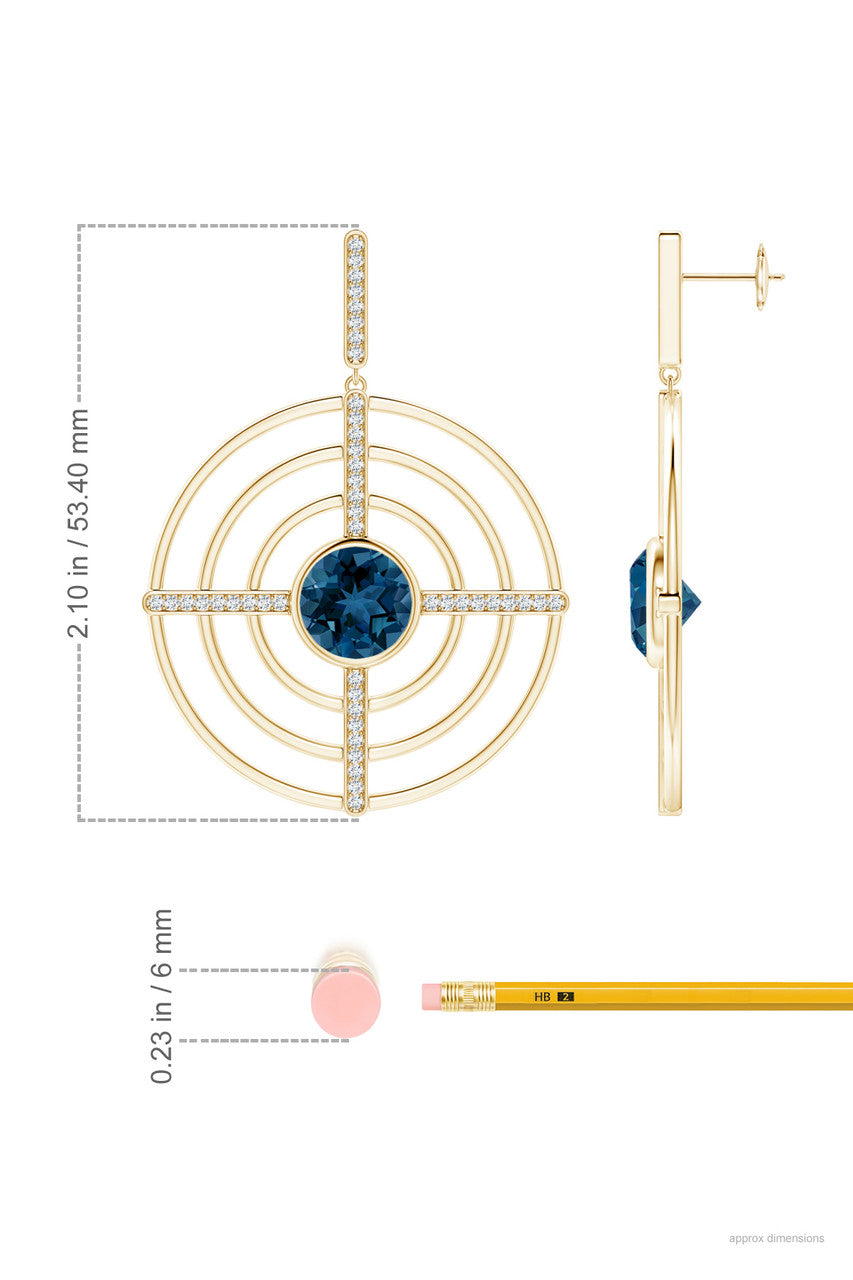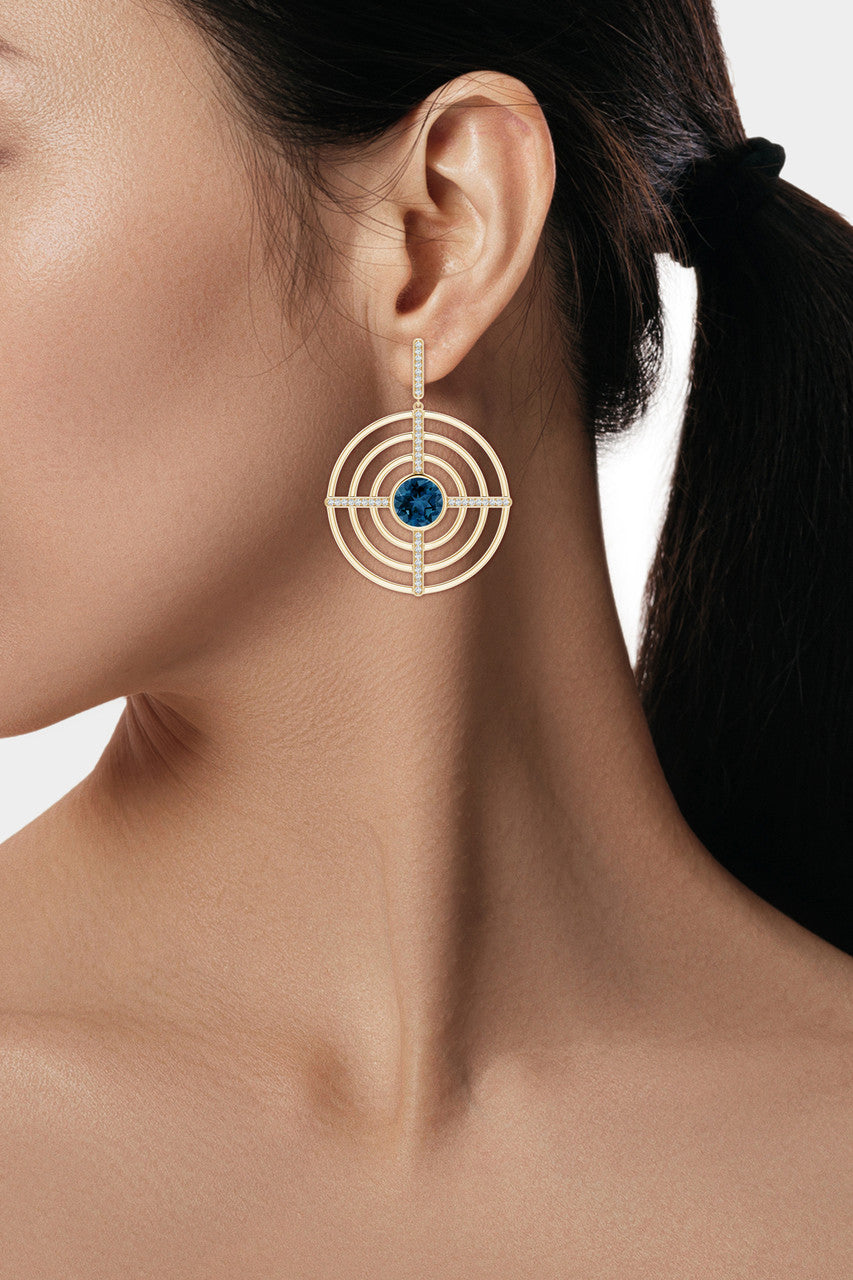 Infinity Concentric Circle 14K Gold and London Blue Topaz Earrings - 14k yellow gold