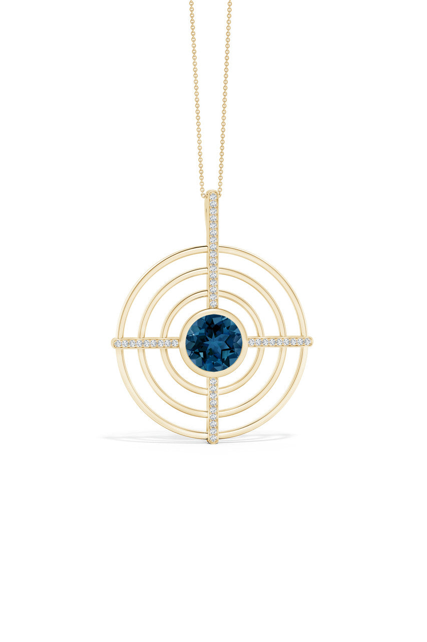 Infinity Concentric Circle 14K Gold and London Blue Topaz Pendant Necklace - 14k yellow gold