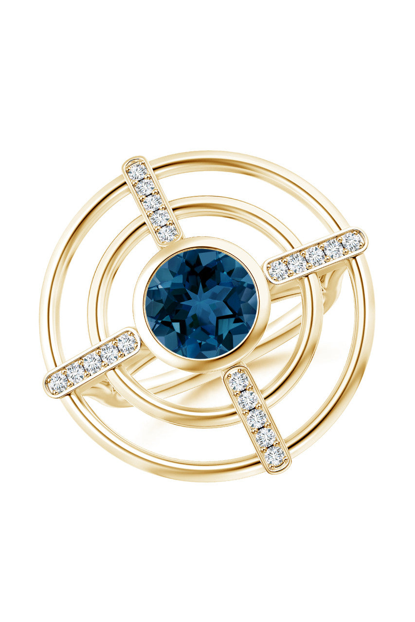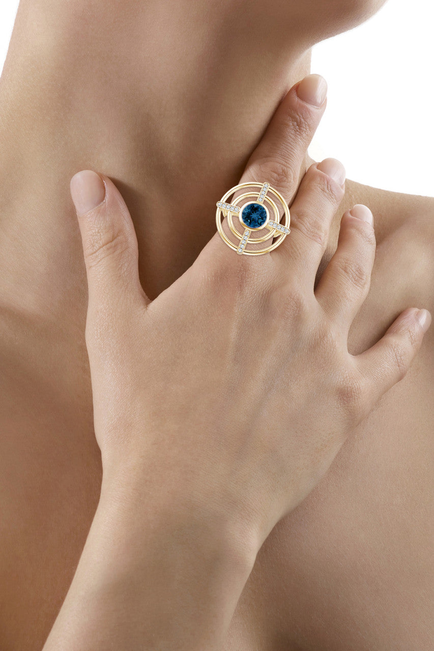 Infinity Concentric Circle 14K Gold and London Blue Topaz Ring - 14k yellow gold