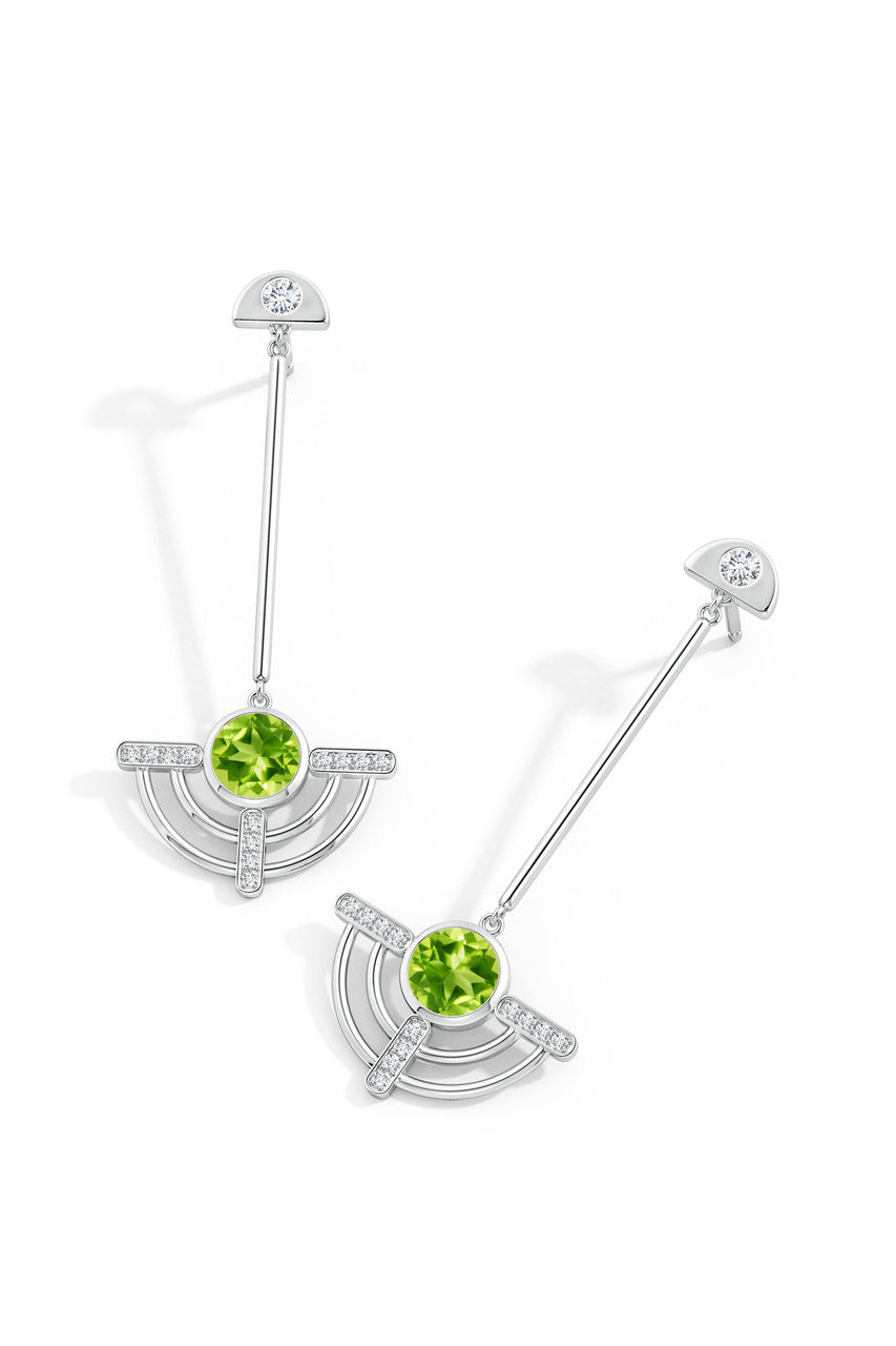 Infinity Half Concentric 14K Gold and Peridot Dangle Earrings - 14k white gold