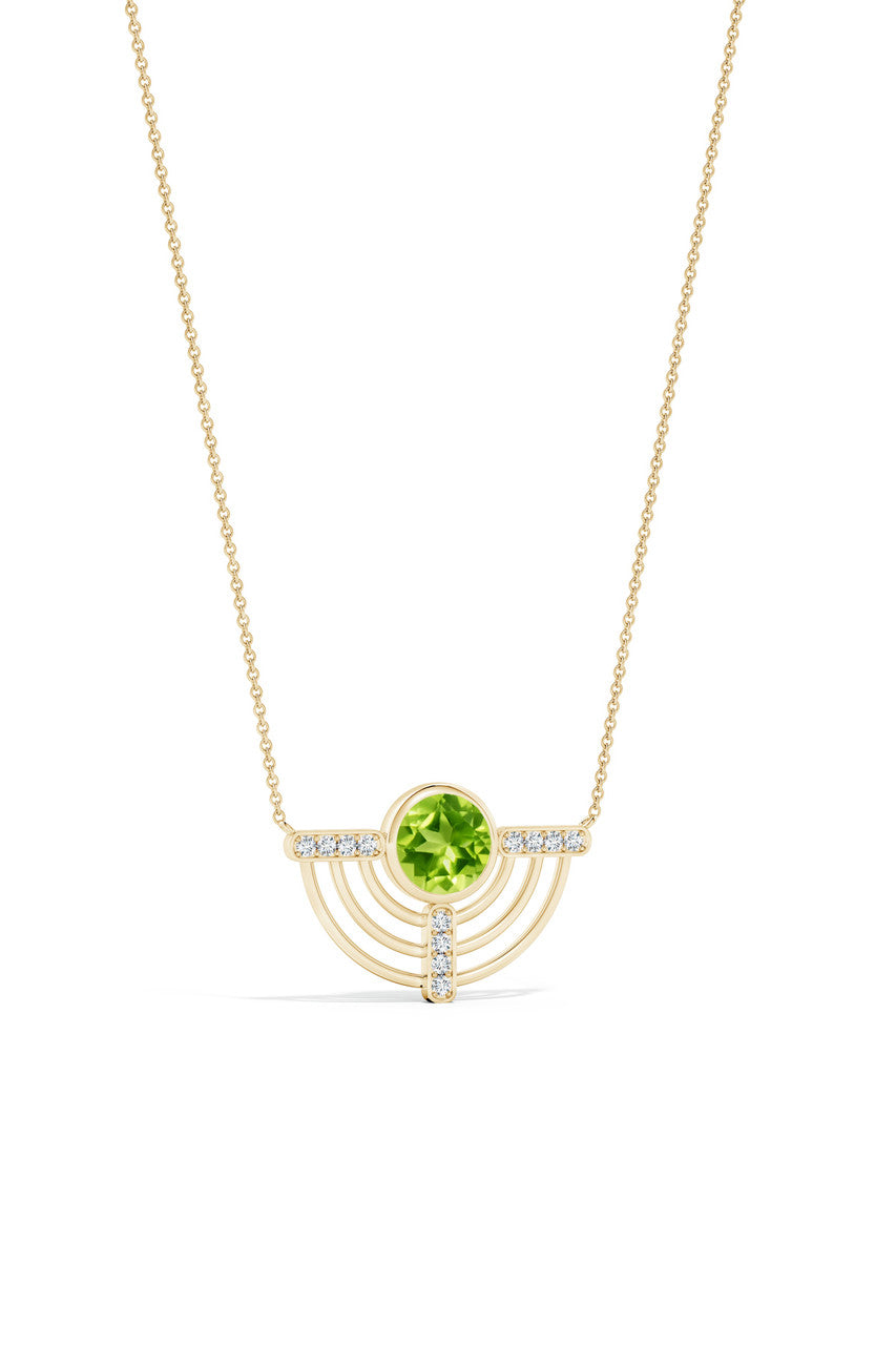 Infinity Half Concentric Circle 14K Gold and Peridot Pendant Necklace - 14k yellow gold