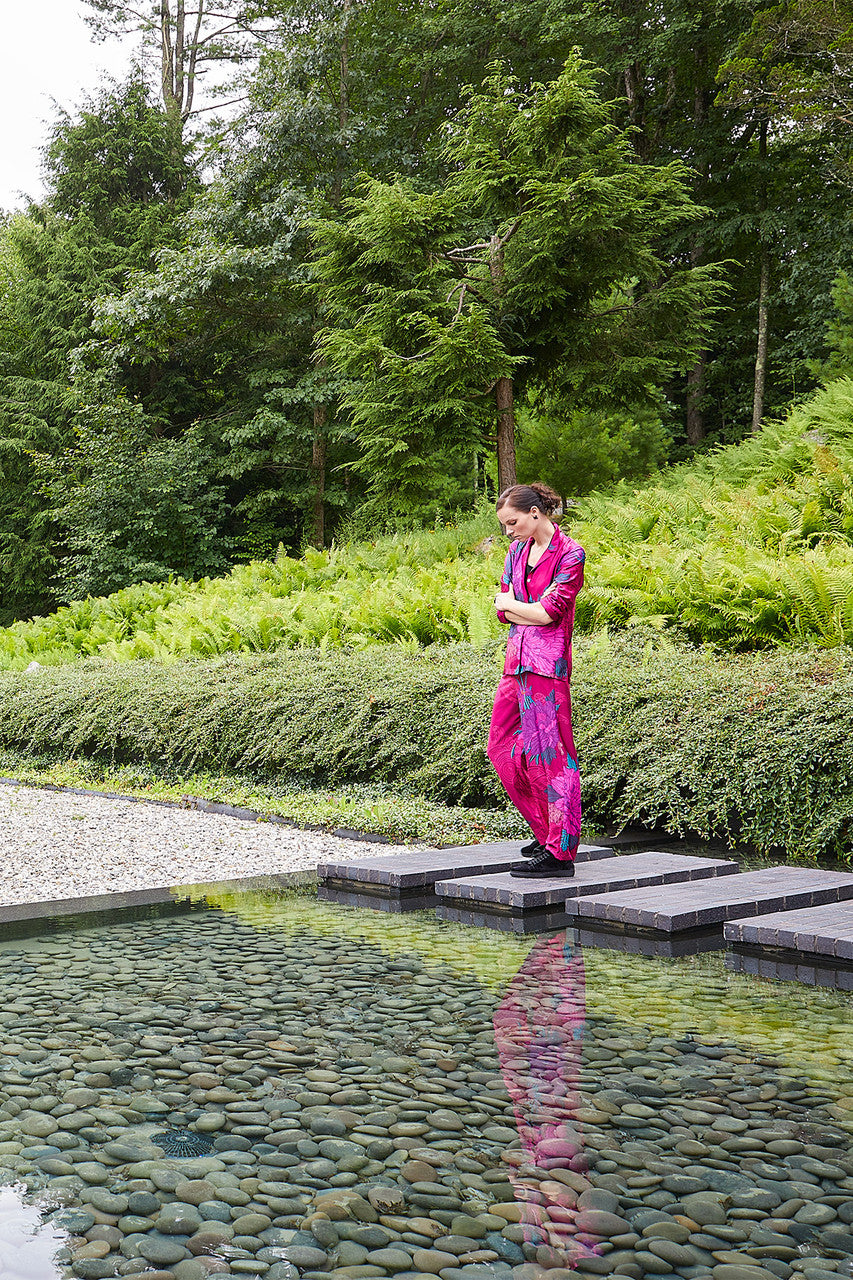 A silky print to style both indoors and out, Jubako conveys an exotic feel, bringing art into life.