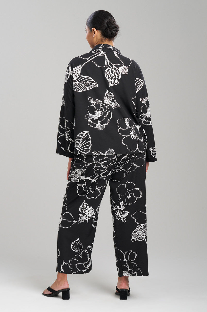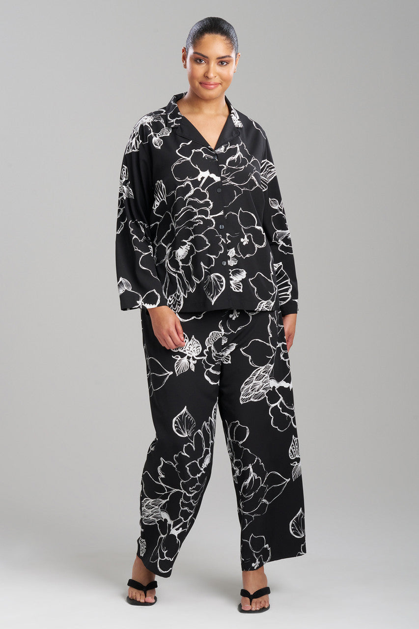 Freshen up your nightly routine with dramatic florals printed on crepe de chine.