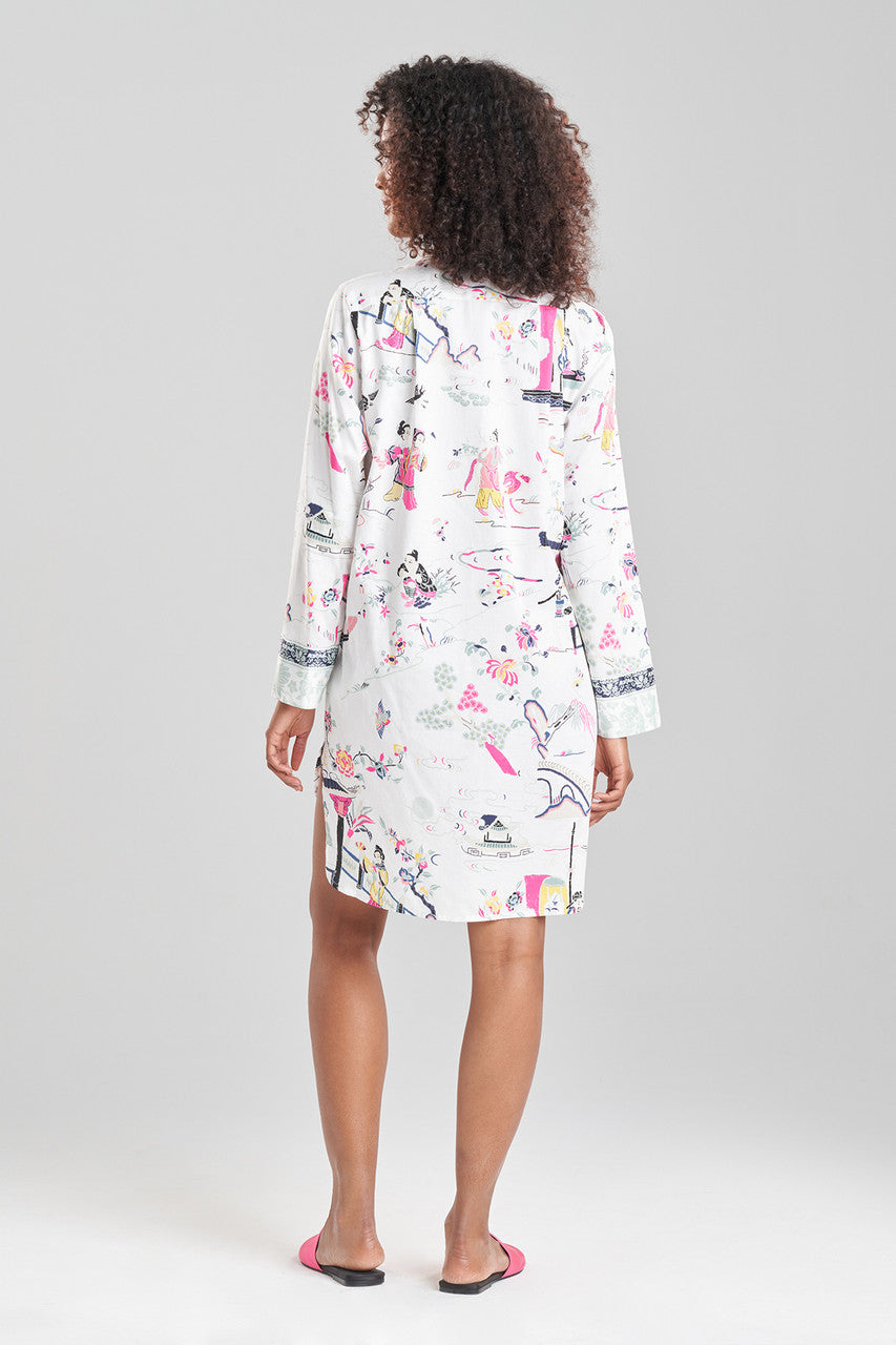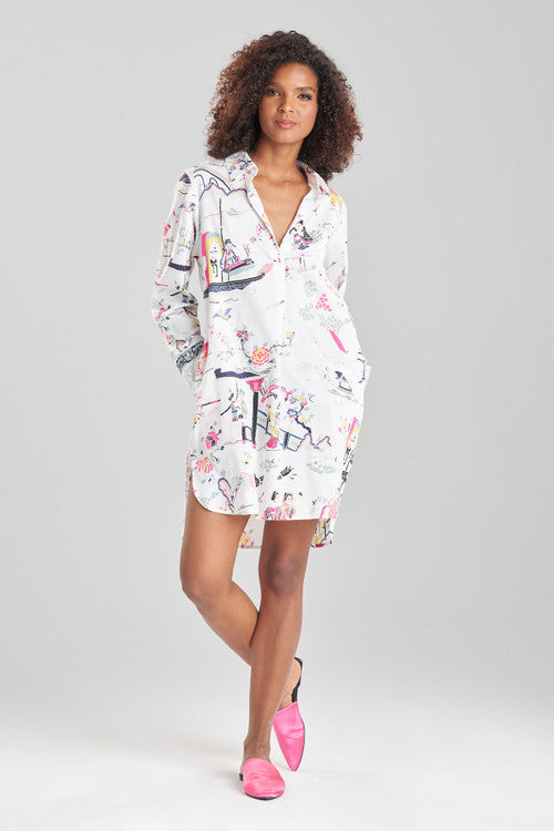 Kana Printed Cotton Sateen Sleepshirt - warm white