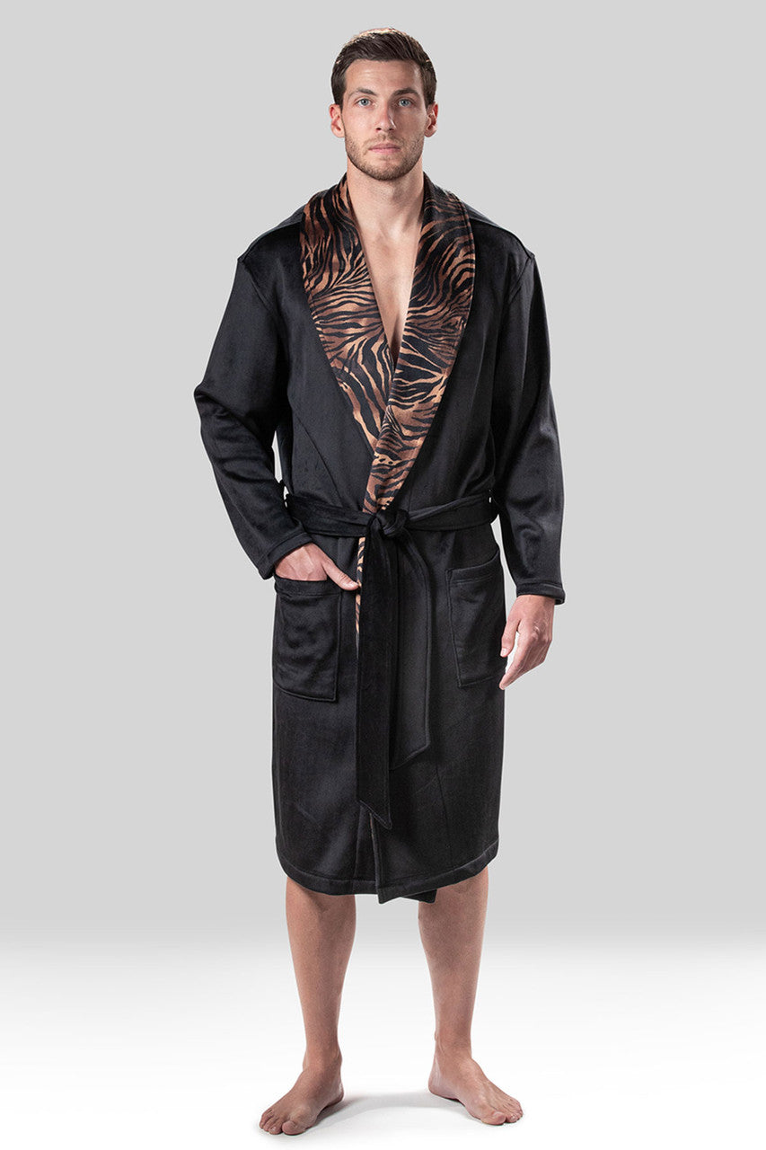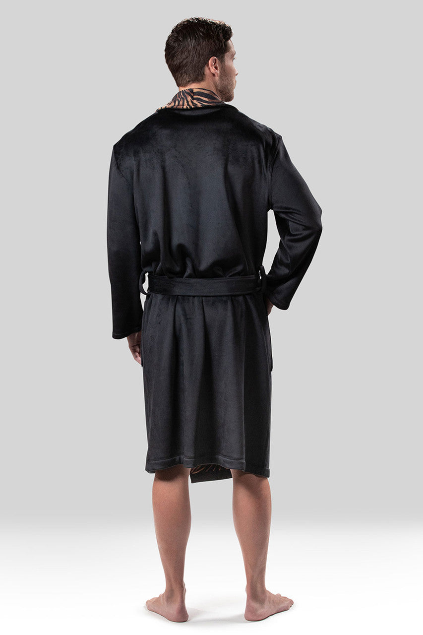 Kasem Comfort Velour Shaw Collar Robe - caviar tiger