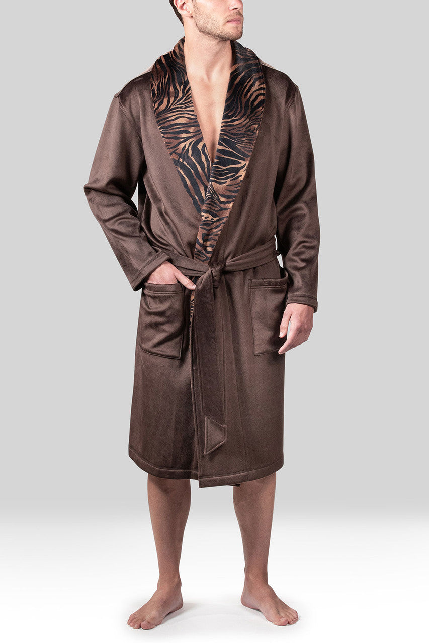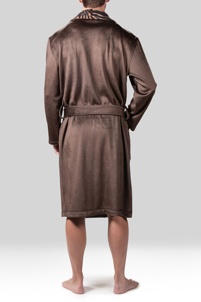 Kasem Comfort Velour Shaw Collar Robe - espresso tiger