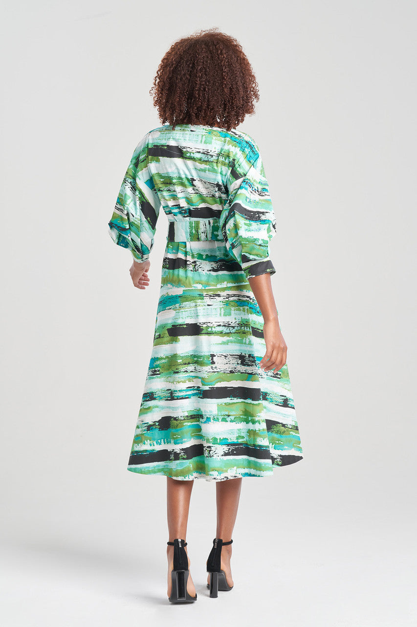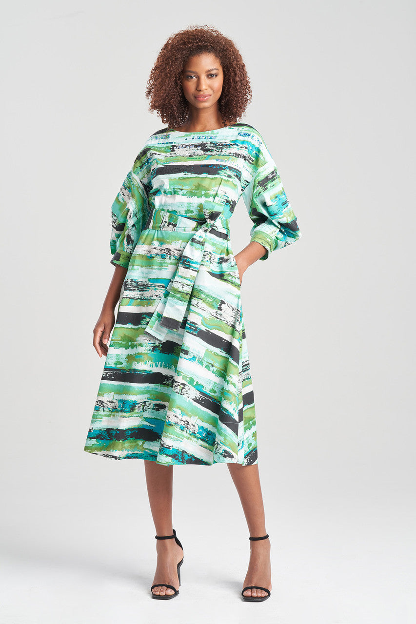 Kazuki Cotton Poplin Boat Neck Embroidered Belted Midi Dress - teal