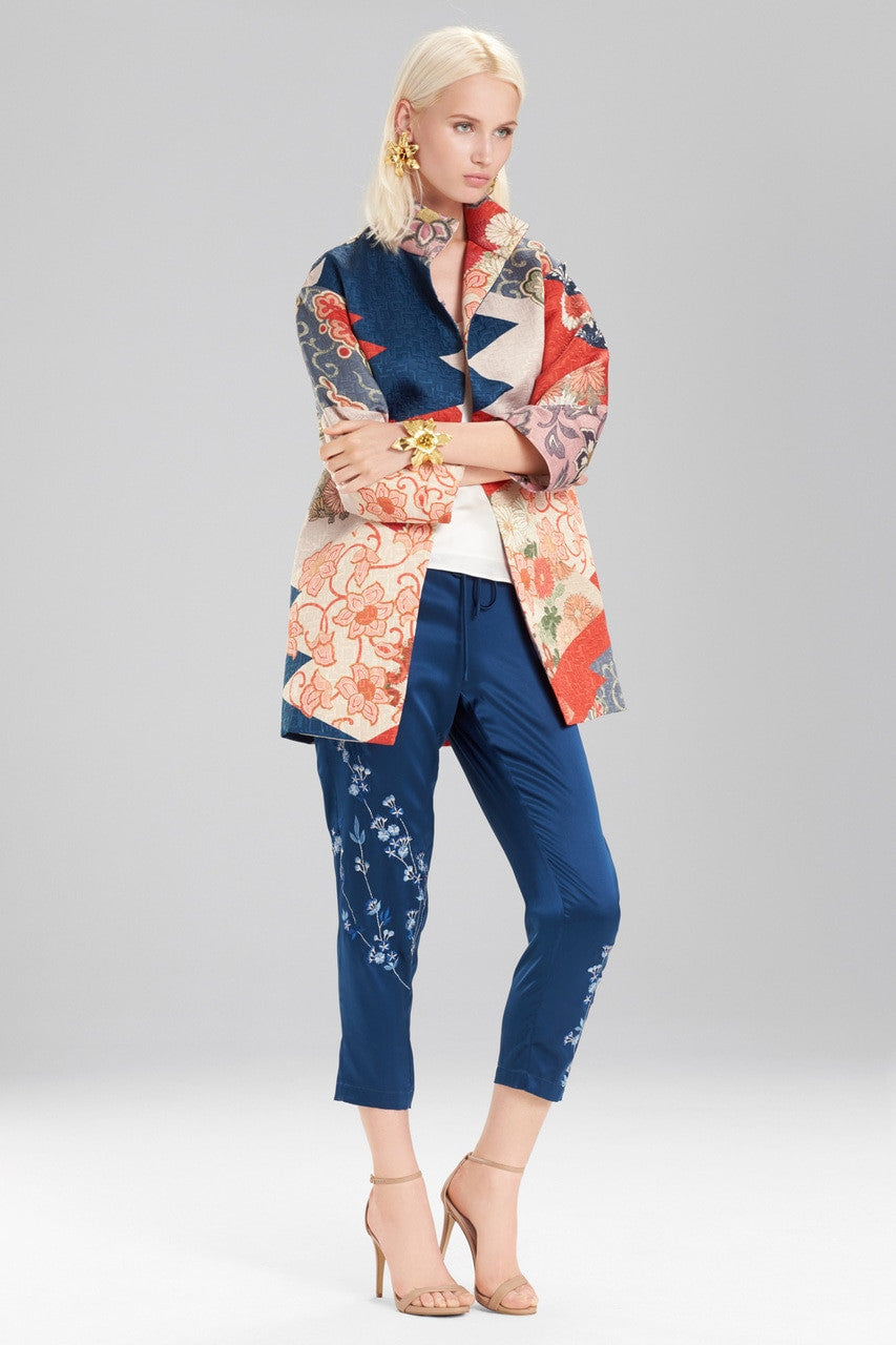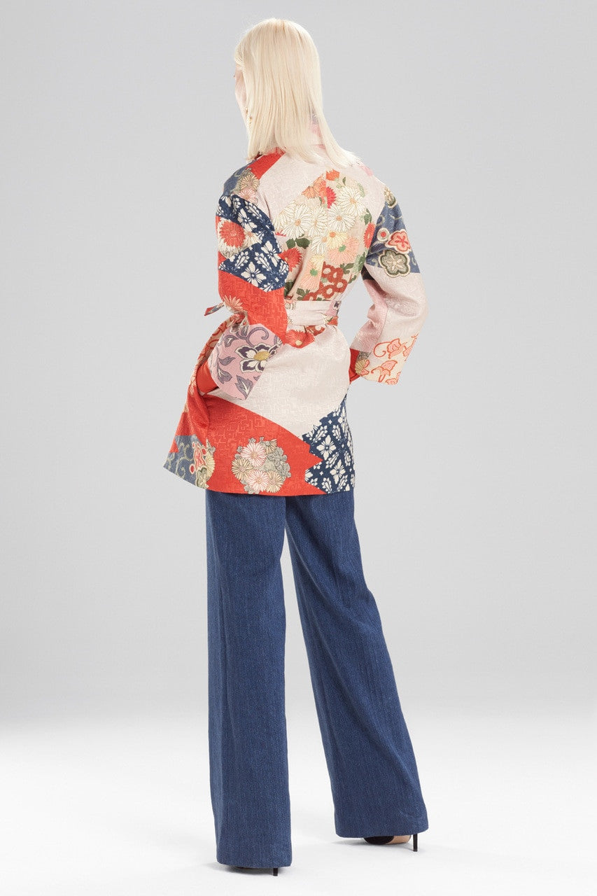 Kimono Patchwork Seamed Long Topper With Sash - multi