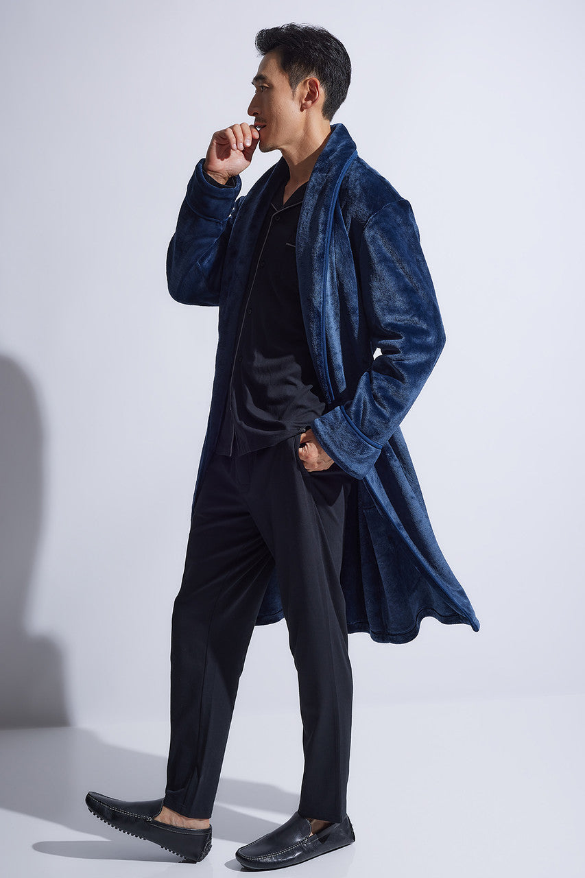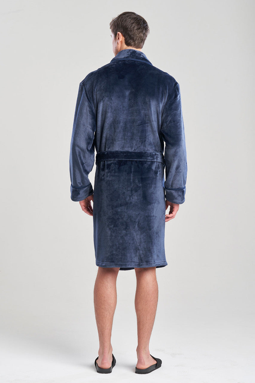 Kinhin Cozy Fleece Piped Collar Robe - dress blues