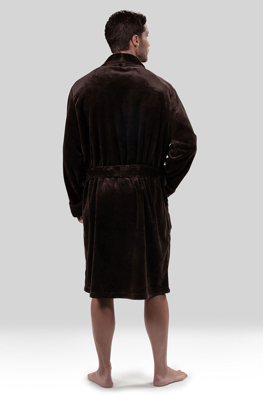 Kinhin Cozy Fleece Piped Collar Robe - espresso