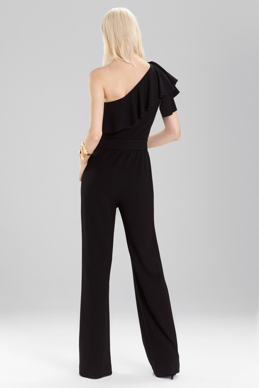 Knit Crepe One Shoulder Ruffle Jumpsuit