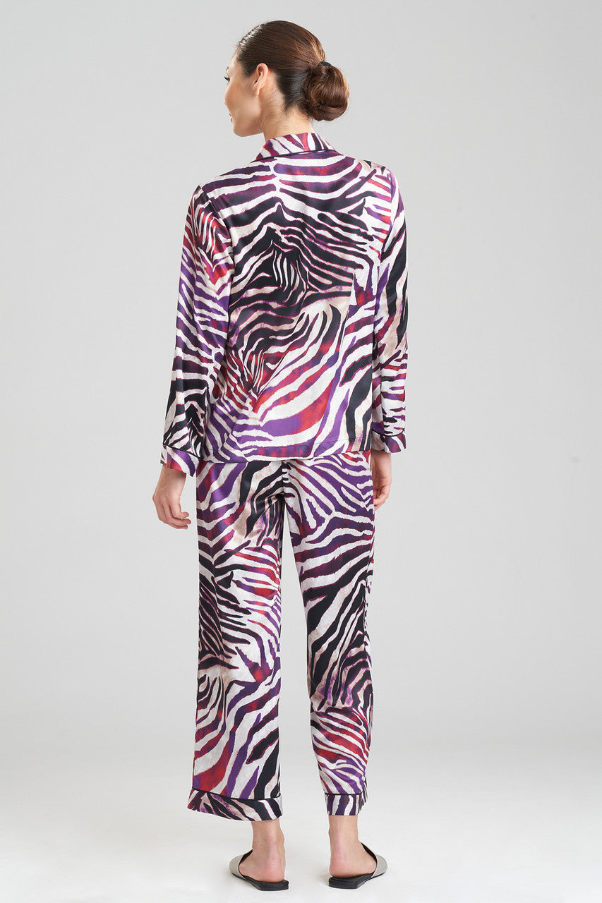 Lustrous ombre zebra print has the feel of satin with the ease and washability of polyester.