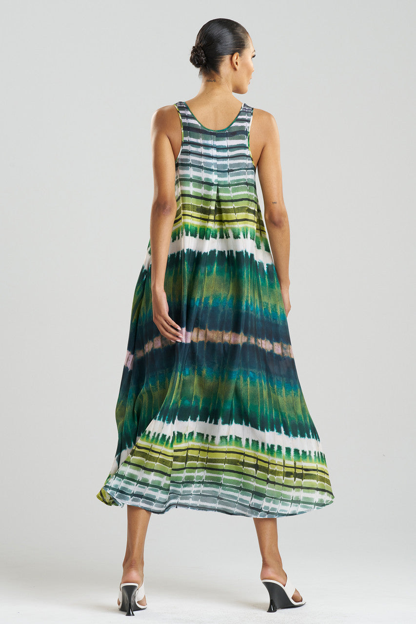 Lana Printed Obi Silk Trapeze Tank Dress - pear