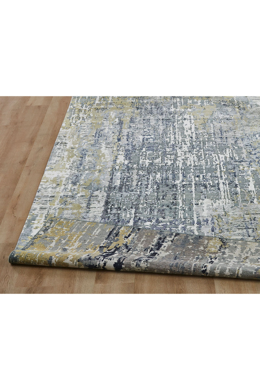The Lhasa collection, featuring Josie Natori's abstract prints on subdued color palettes, brings art into life. Shapes in the Bamboo rug hint at the flowering evergreen.