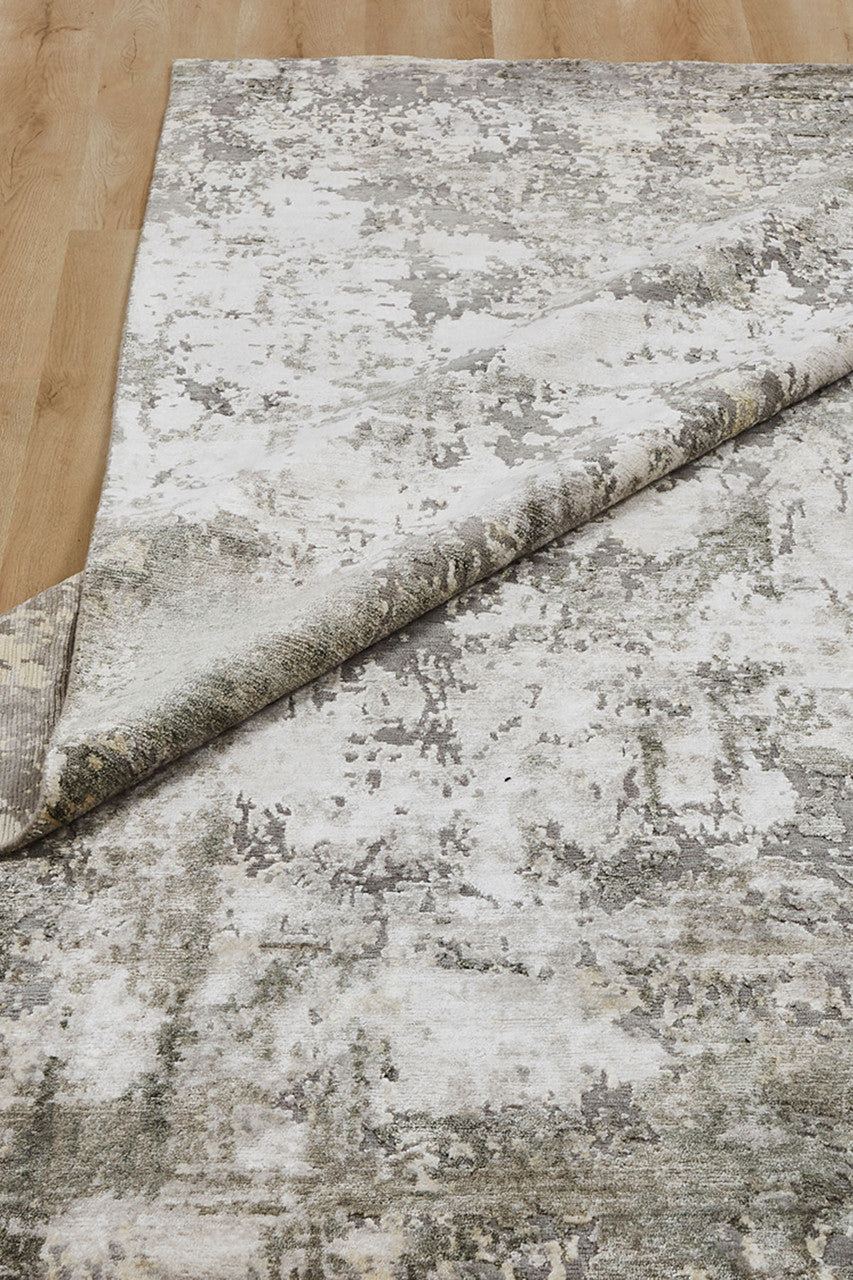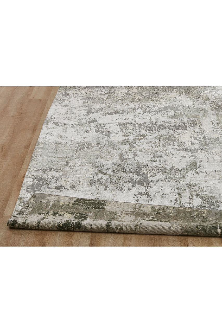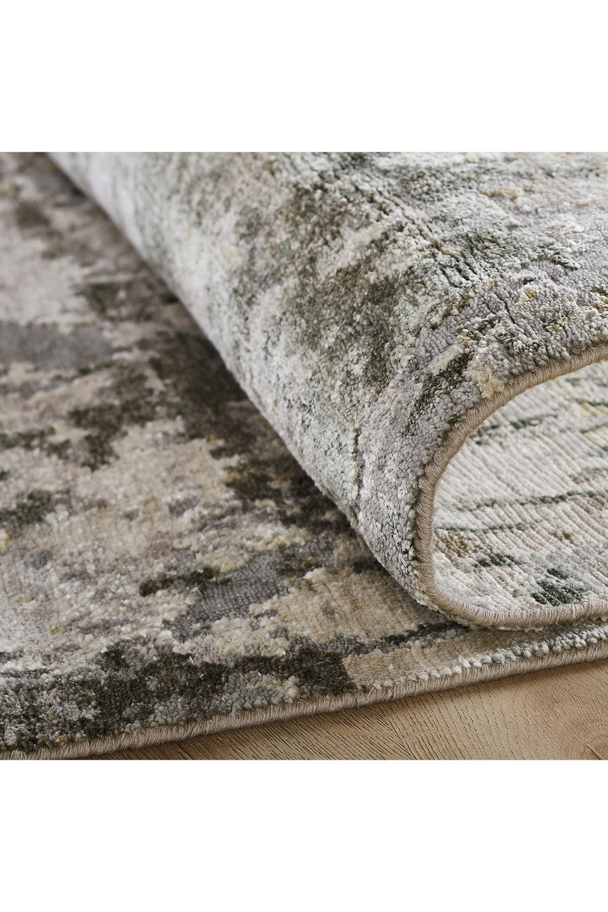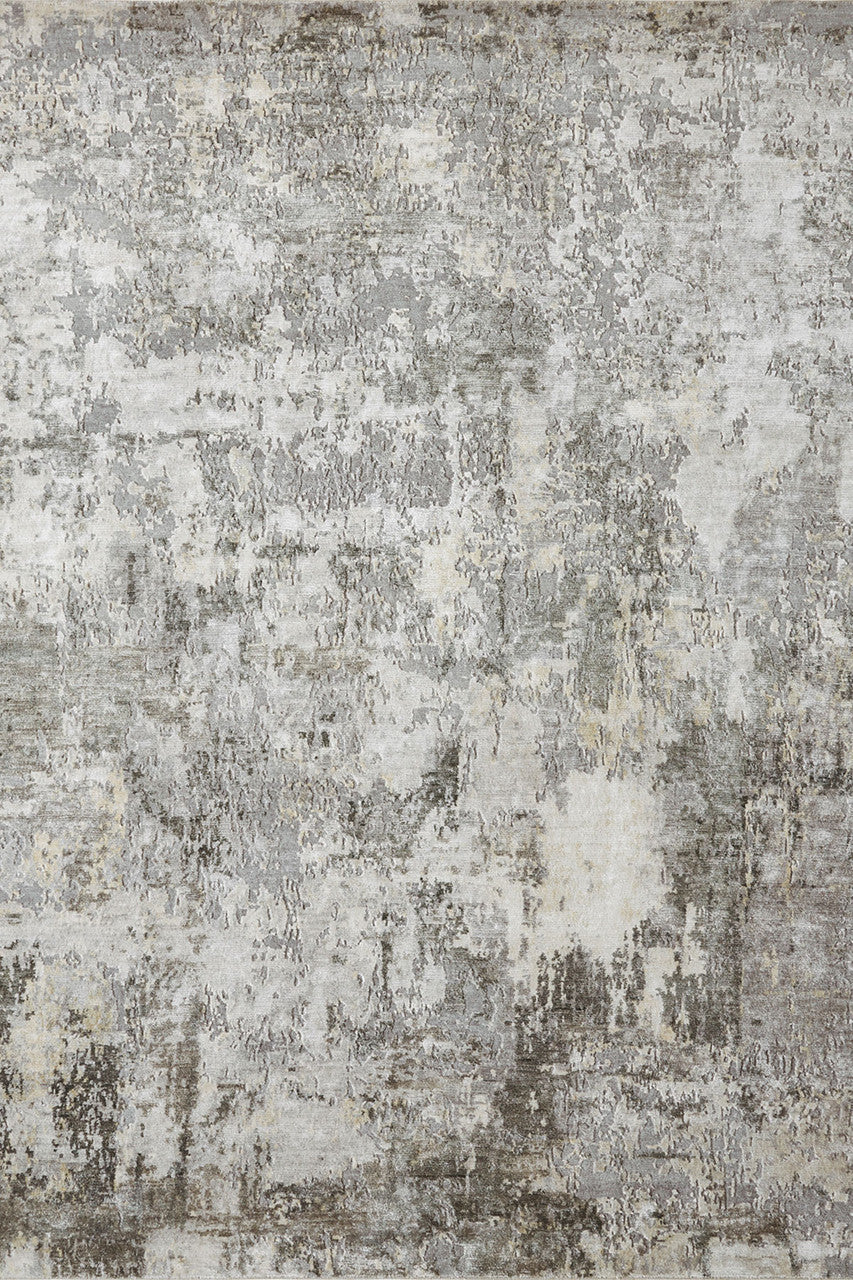 The Lhasa collection, featuring Josie Natori's abstract prints on subdued color palettes, brings art into life. Shapes in the Bamboo rug hint at the flowering evergreen.