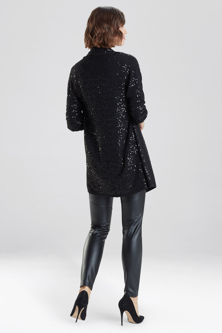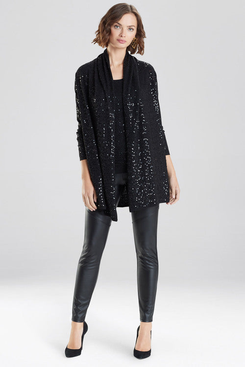 Light Weight Knit Sequin Cardigan Sweater - Black