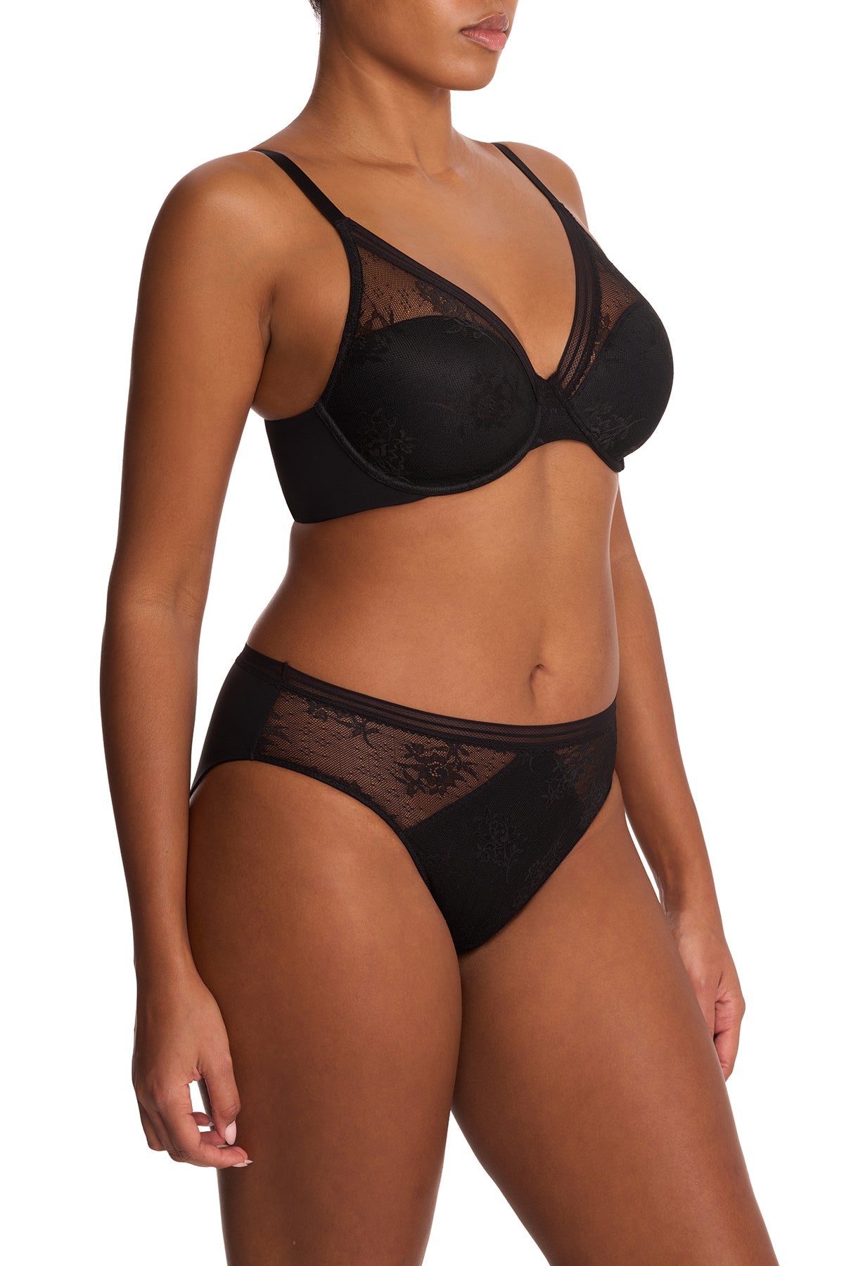 A luxurious and feminine take on Natori's signature plunge silhouette. Floral lace cups, made from innovative LYCRA® ADAPTIV yarns, offer a perfect balance of softness and stretch, ensuring a flattering fit that adapts to your body. Wide, smooth backs complete the design for a T-shirt bra that offers all-day comfort.