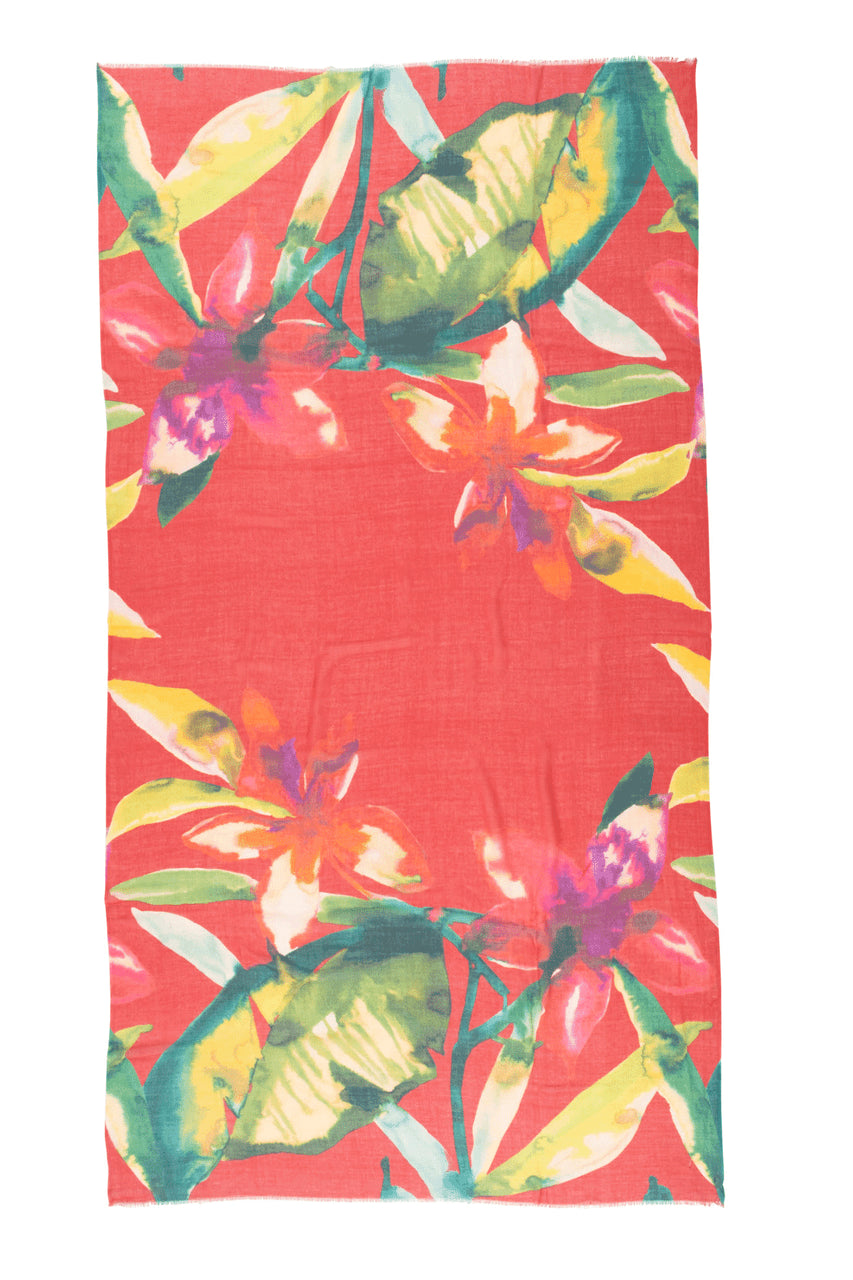 Create a fresh look with tropical florals printed on a cotton silk blend.