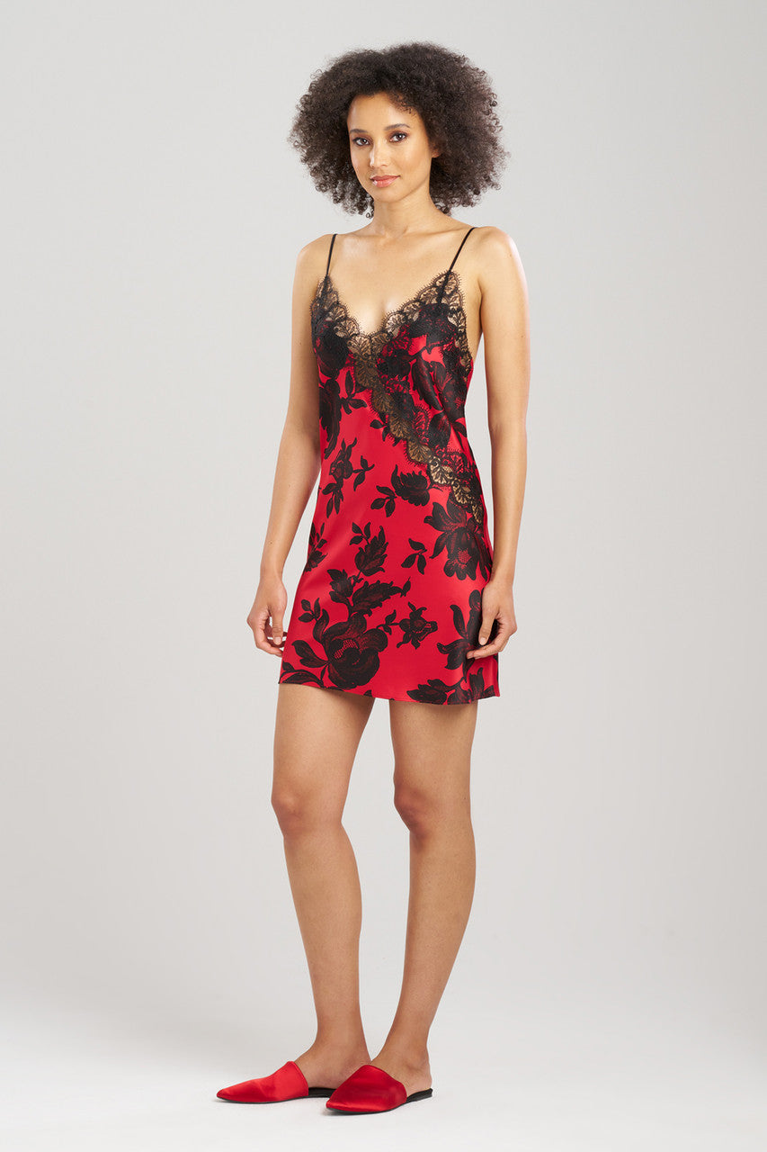 Mantilla V-Neck Lace Applique Chemise - brocade red combo