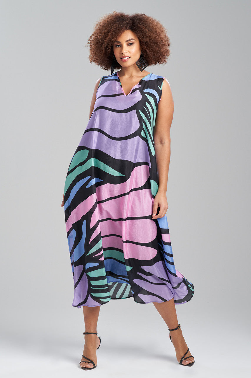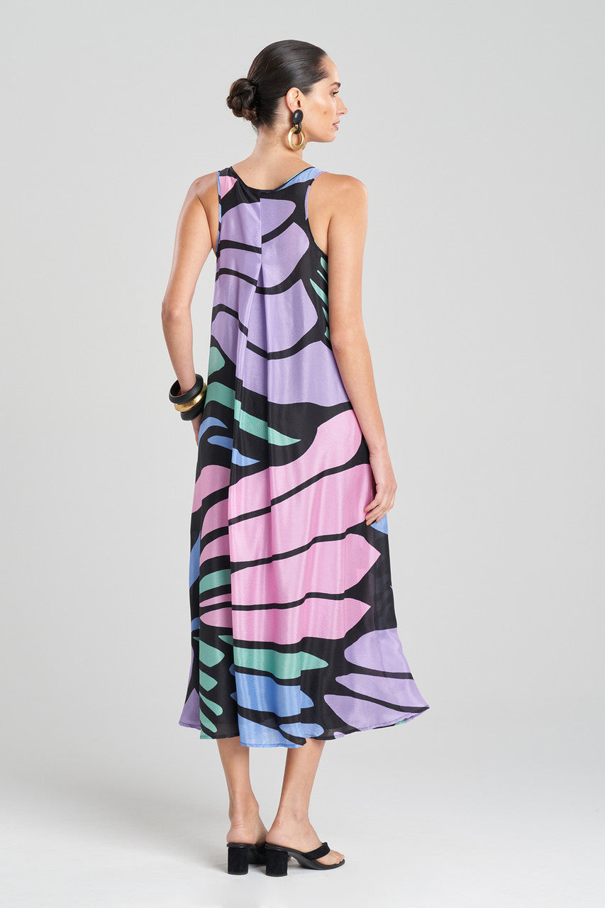 - Elegant trapeze dress in statement Nagashi print