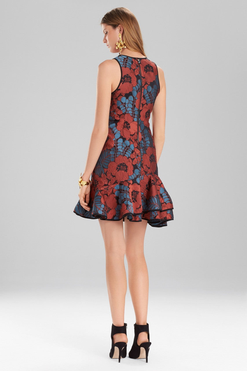 Novelty Jacquard Sleeveless Ruffle Hem Dress
