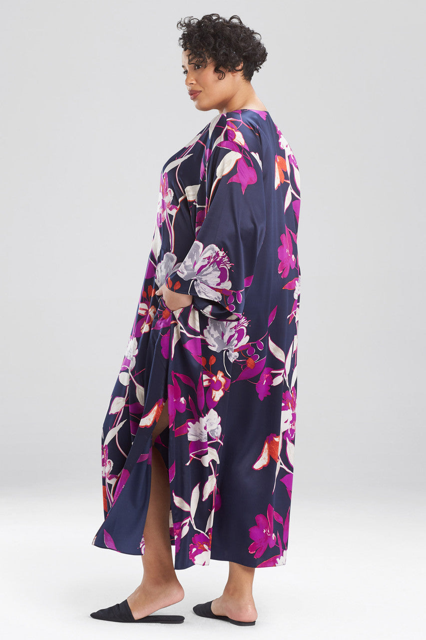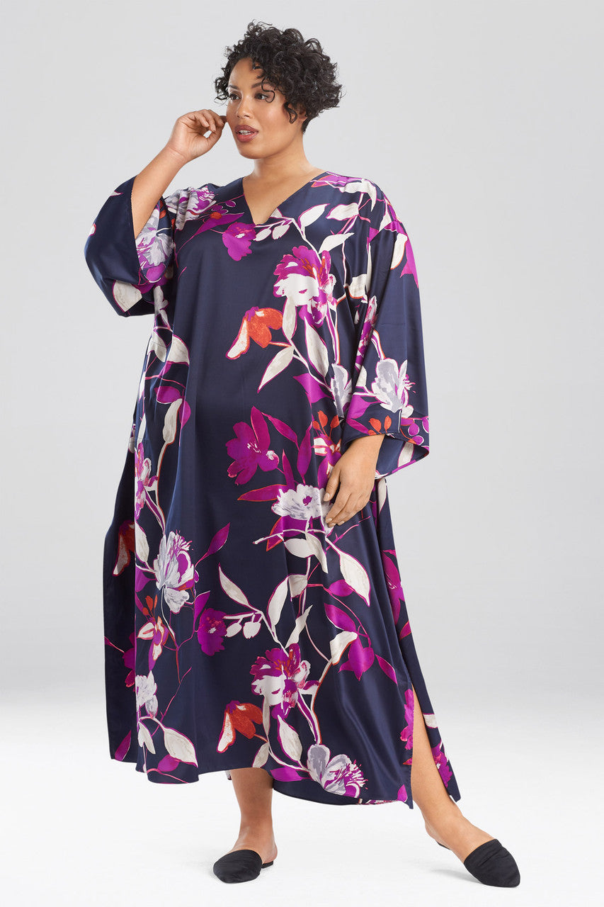 Bold rich colors paired with a classic floral print give this caftan a flirty feel.