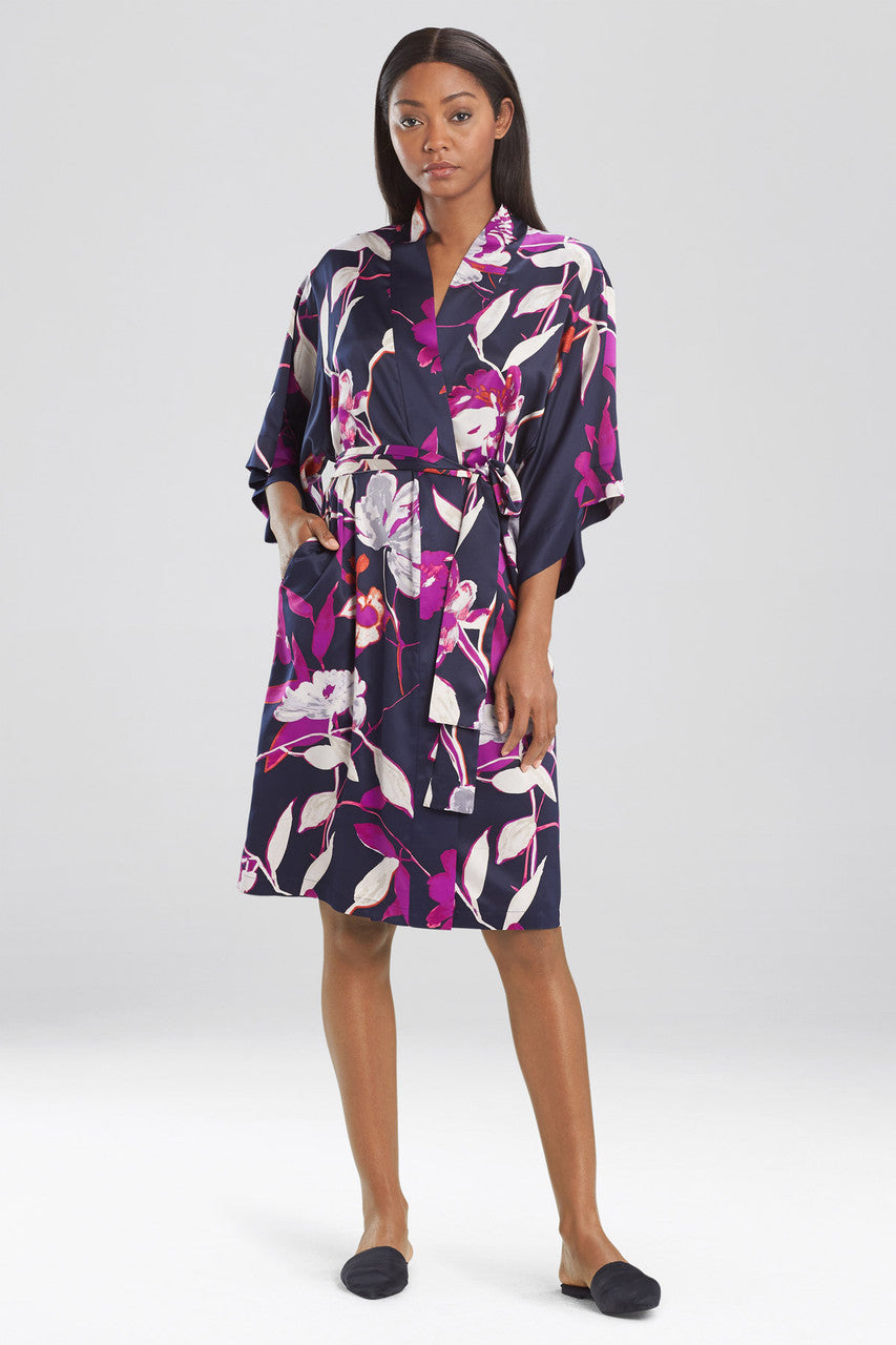 Bold rich colors paired with a classic floral print give this robe a flirty feel.