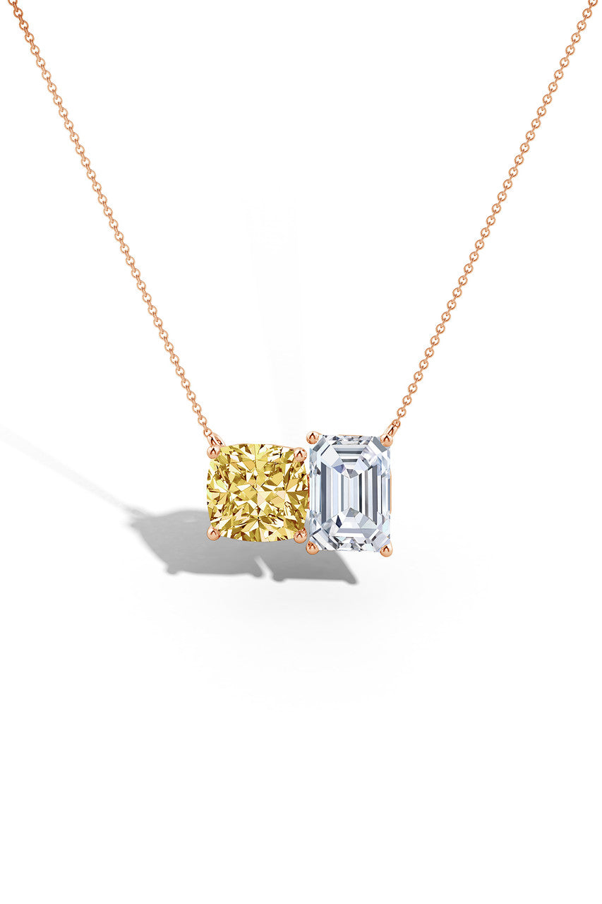 Orient Express Lab-Grown 14K Gold with Yellow & White Diamond Two Stone Pendant Necklace