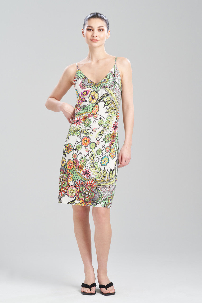 Whimsical florals woven on crepe de chine.