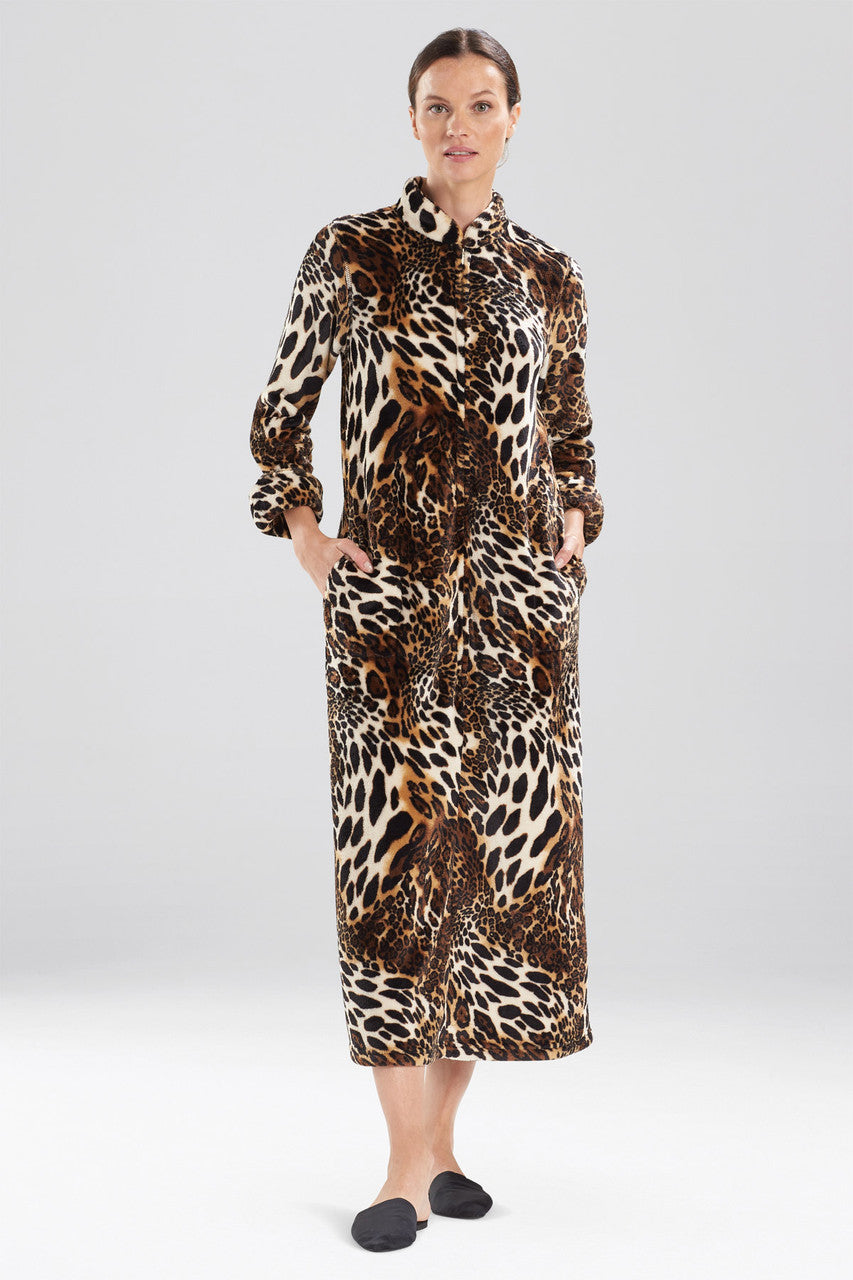 The Plush Leopard Zip Caftan is this season's staple, designed with a custom Natori animal print in soft & cozy velour.