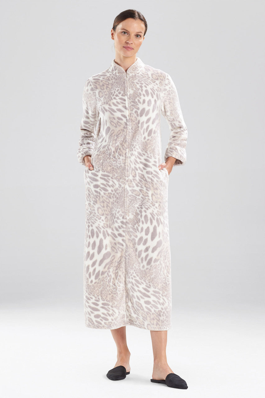 The Plush Leopard Zip Caftan is this season's staple, designed with a custom Natori animal print in soft & cozy velour.