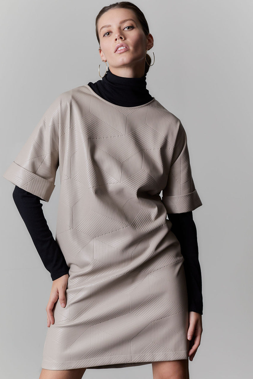 Prism Faux Leather T-Shirt Dress - sandriver stone