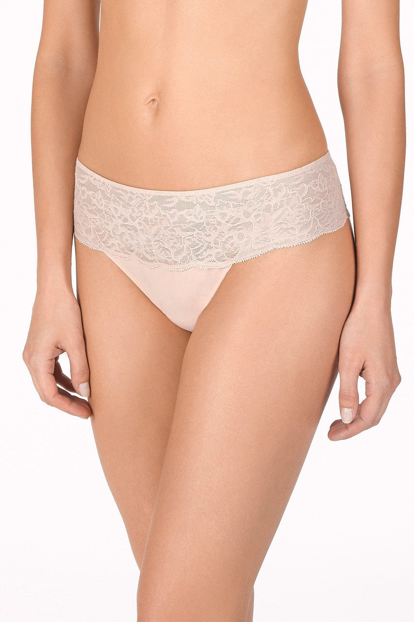 A mid rise thong with all the comfort you crave without the coverage. Super soft lace fabric makes this thong the perfect figure-flattering piece for your wardrobe needs.