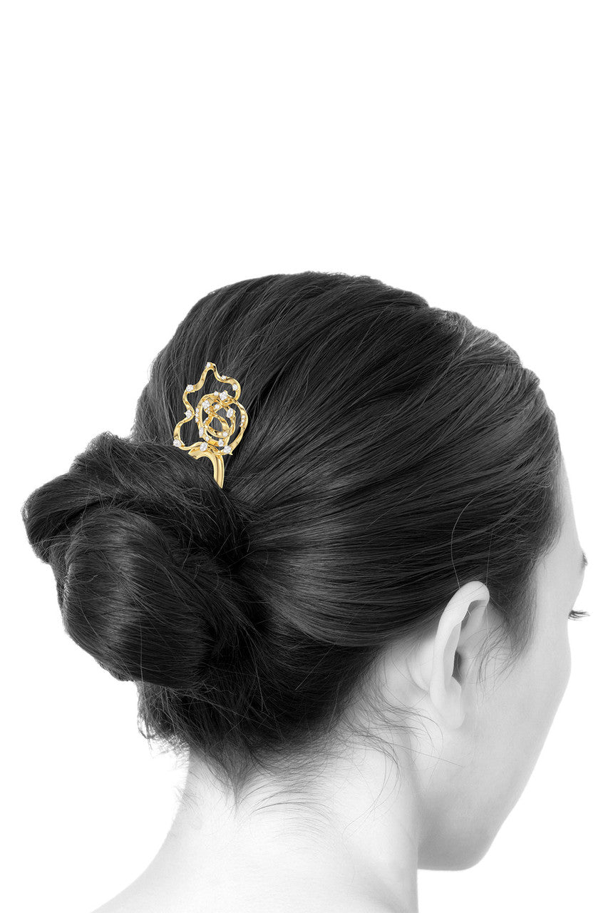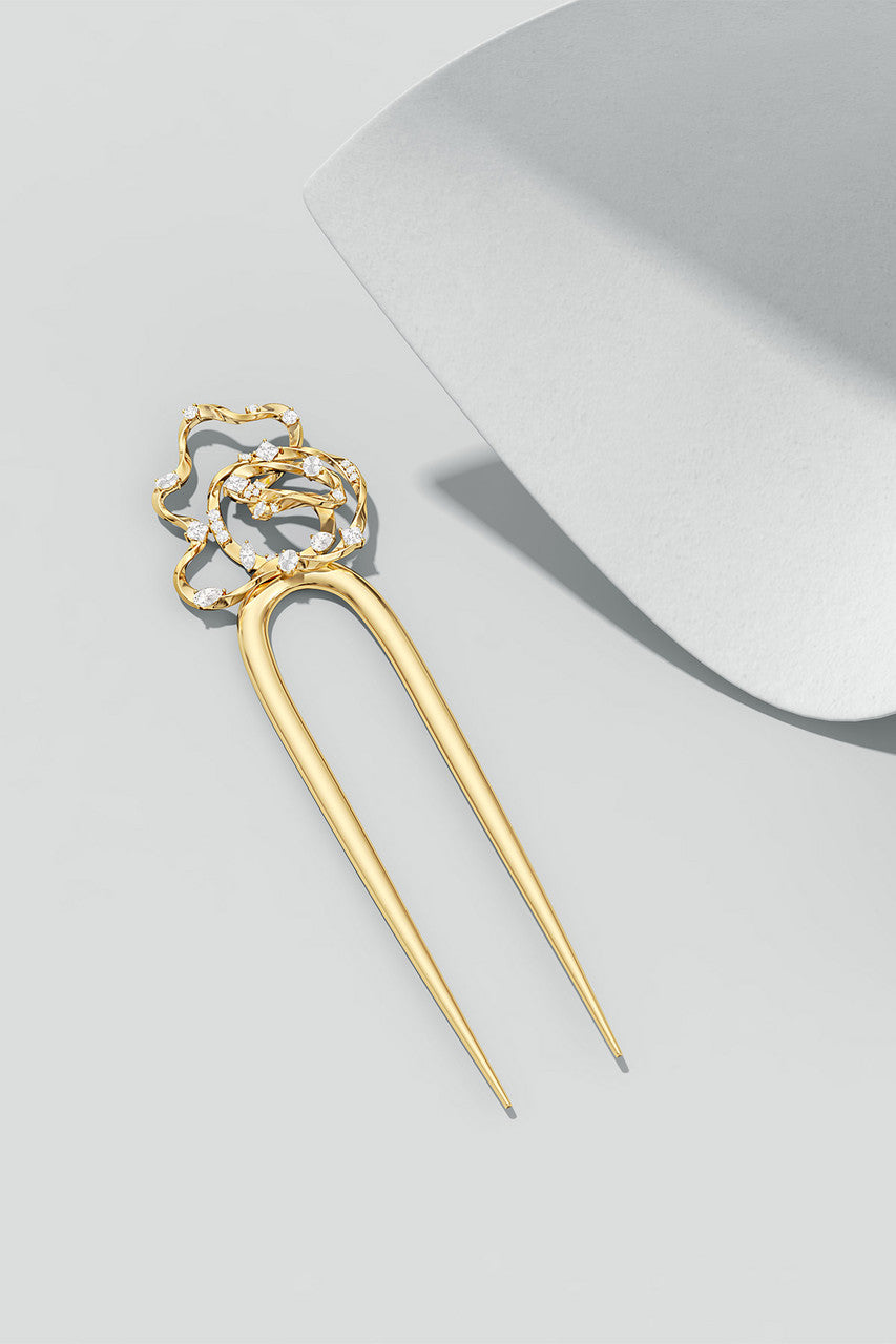Runway Collection Sakura Dispersed White Topaz Hair Pin - yellow gold vermeil