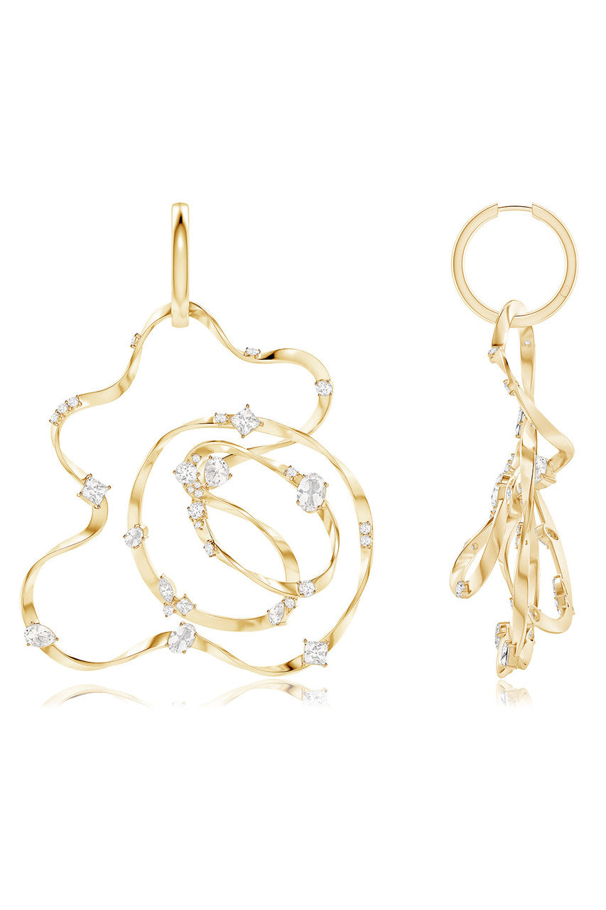 Runway Collection Sakura White Topaz Giant Gold Hoop Earrings