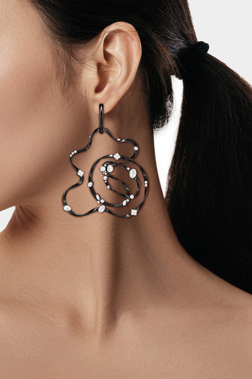 Runway Collection Sakura White Topaz Giant Hoop Earrings - midnight silver