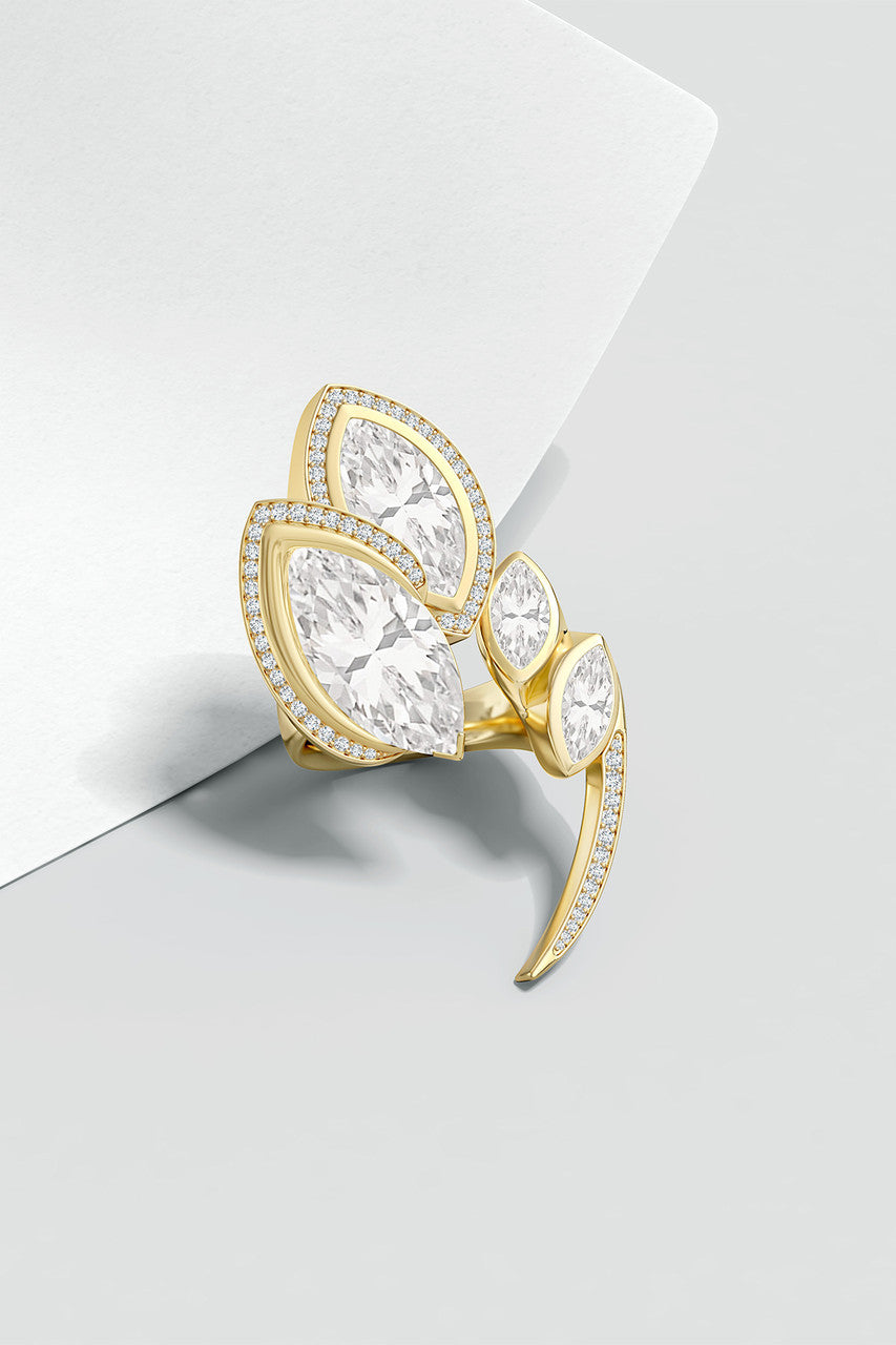 Runway Collection Sumi White Topaz and Diamond Gold Statement Ring - 14k yellow gold