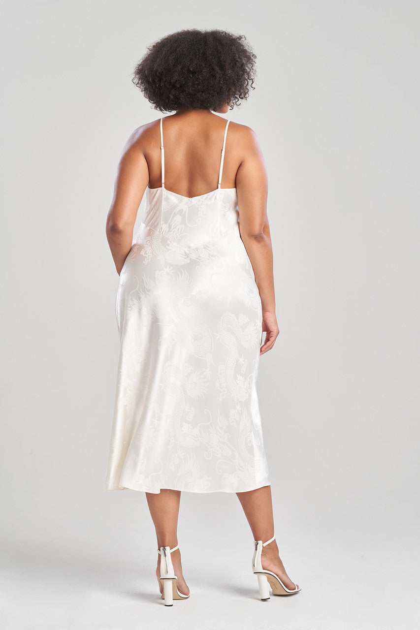- Our flattering seamed gown with a V-neck neckline and adjustable straps