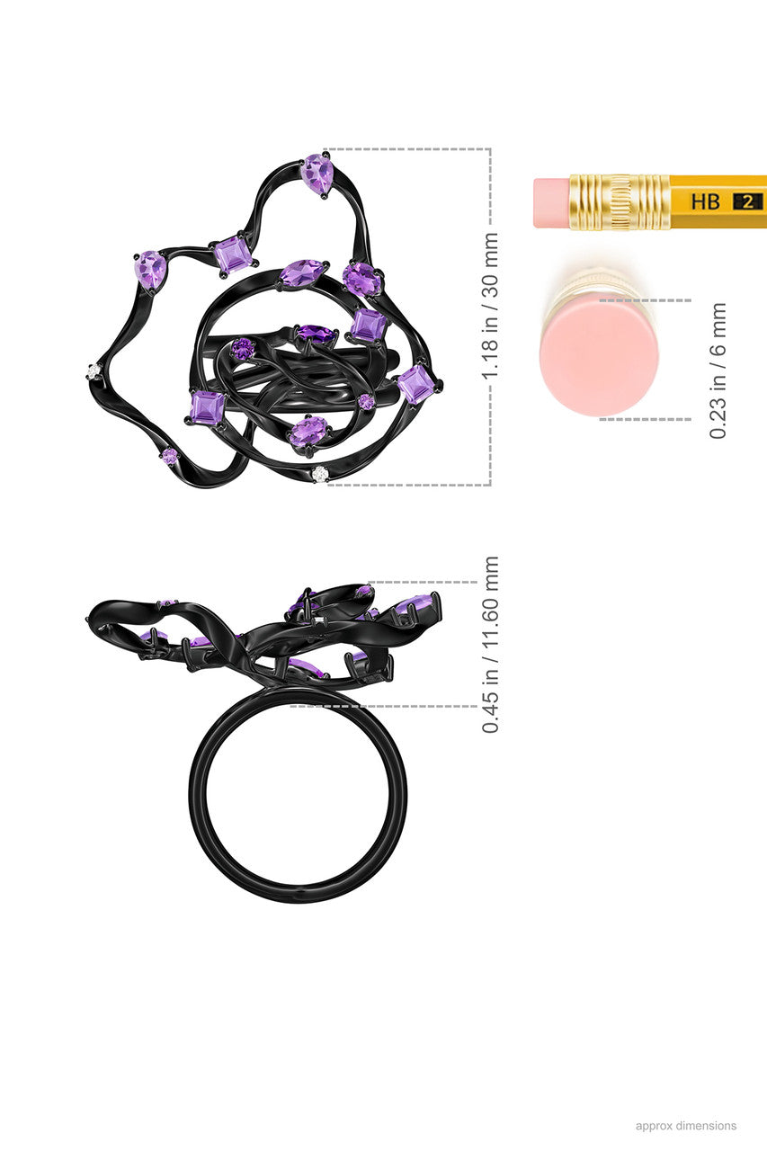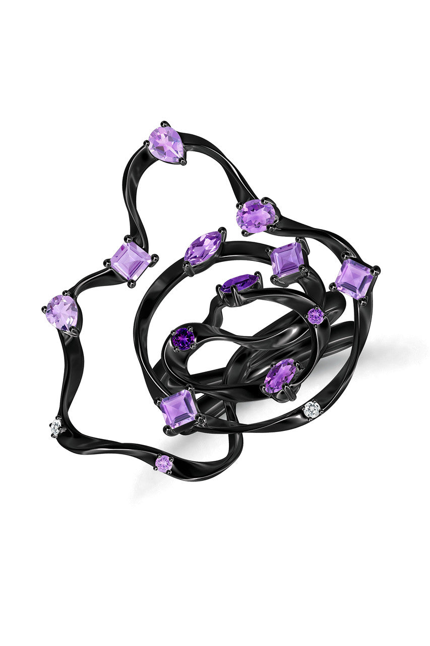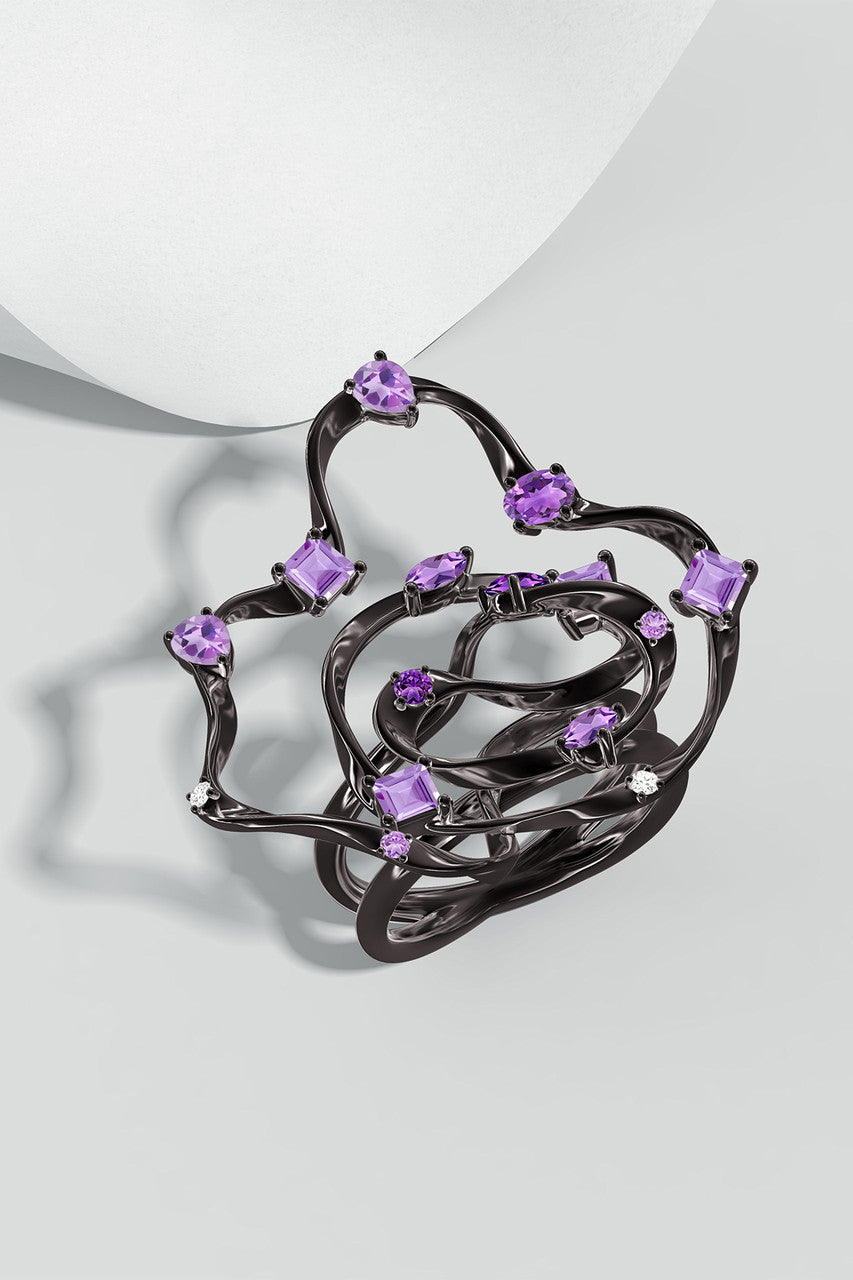 Sakura Dispersed Amethyst Ombre Cocktail Ring - midnight silver