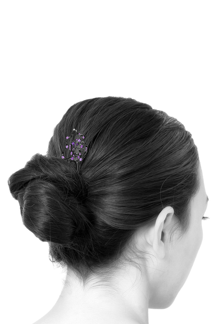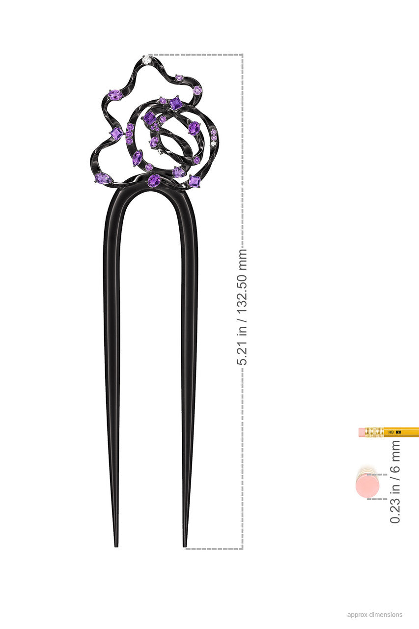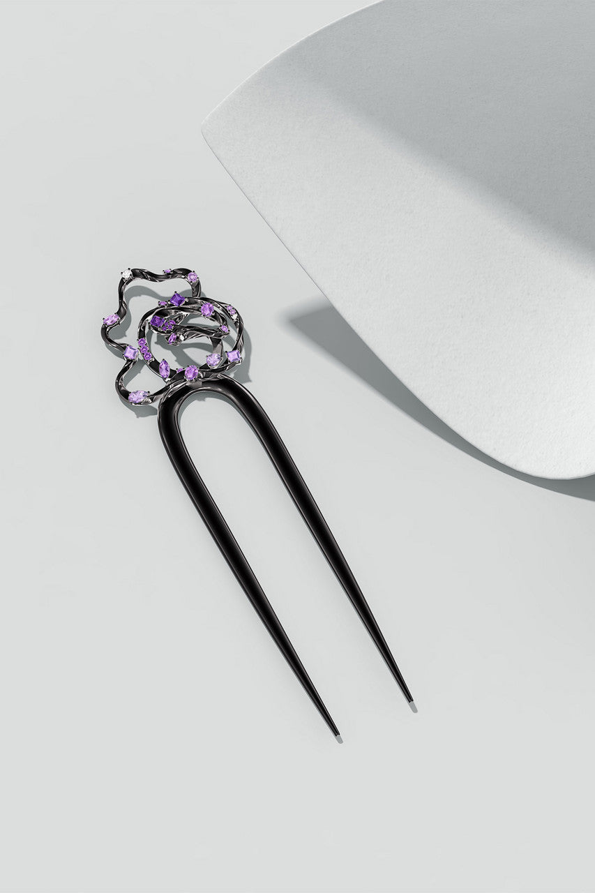 Sakura Dispersed Amethyst Ombre Hair Pin - midnight silver