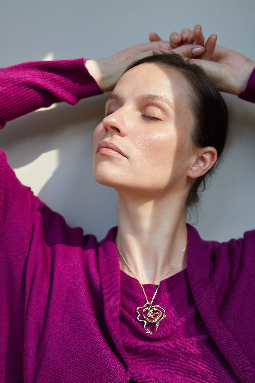 Sculptural abstract lines come to life in Sakura. The look is simplified, voluminous, ethereal forms while their perimeters echo the delicacy of a flower.