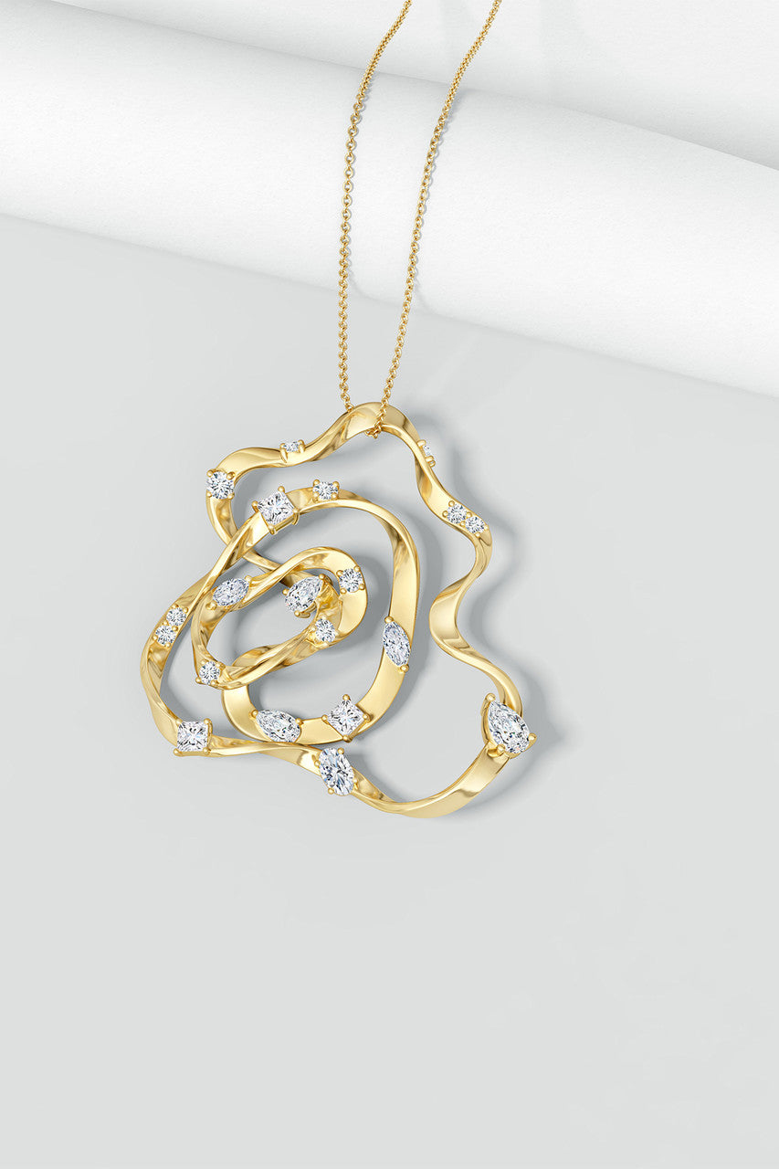 Sakura Dispersed Diamond Pendant Necklace - 14k yellow gold