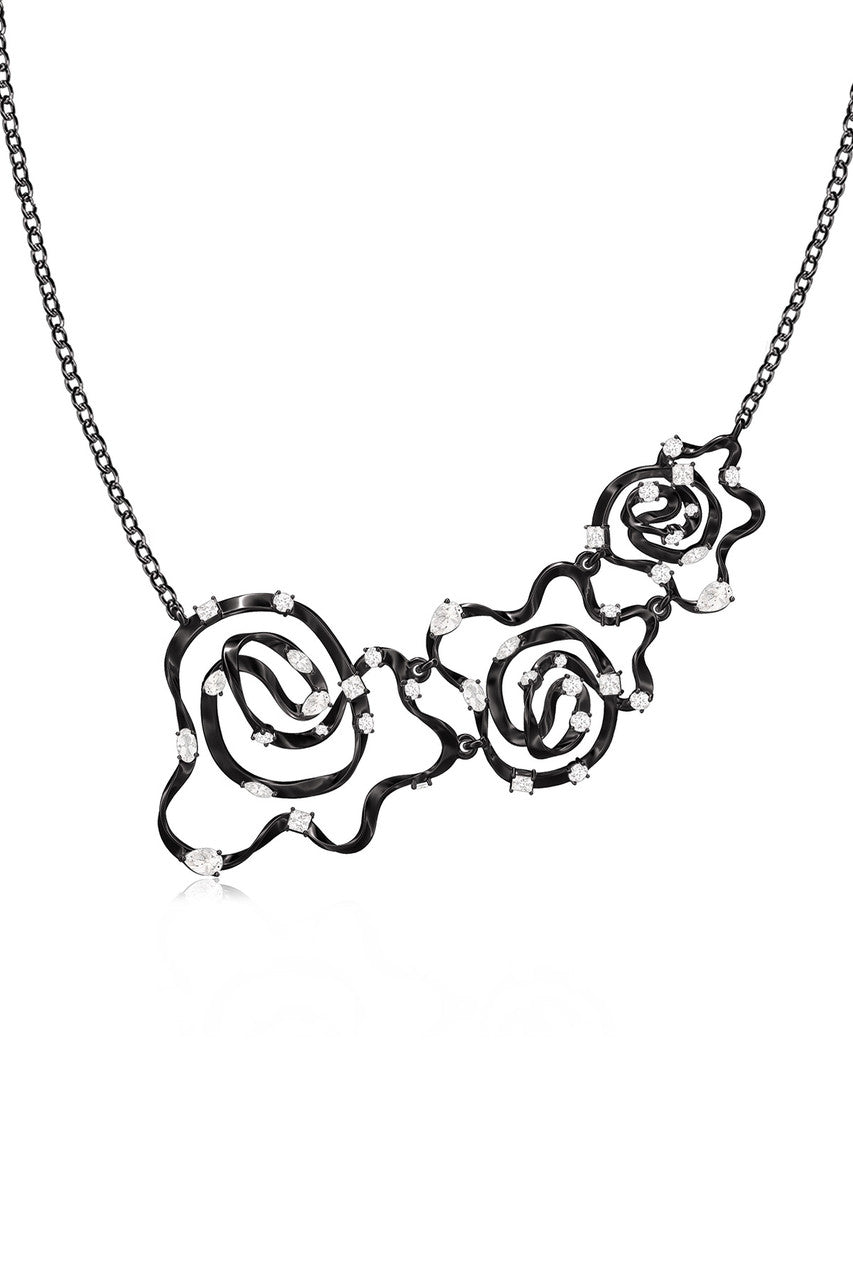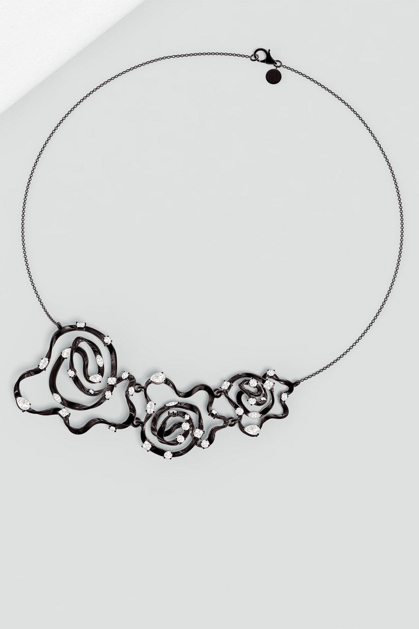 Sakura Midnight SIlver White Topaz Asymmetrical Necklace - midnight silver