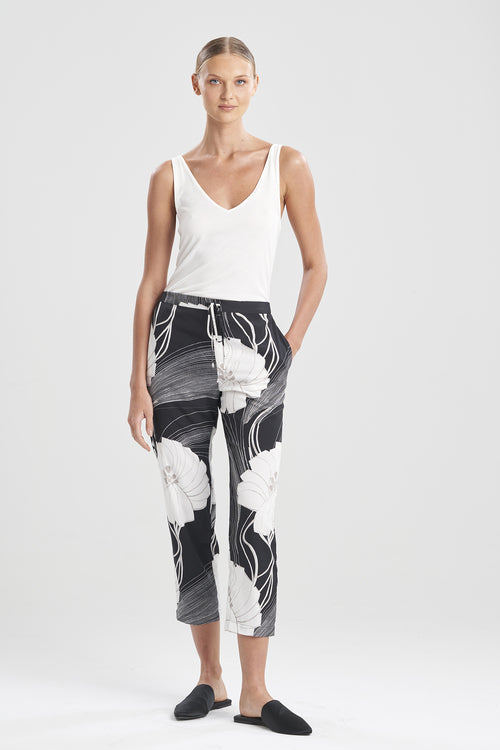 Feel relaxed in Sakura, featuring artful cherry blossoms printed on lightweight Crepe de Chine.