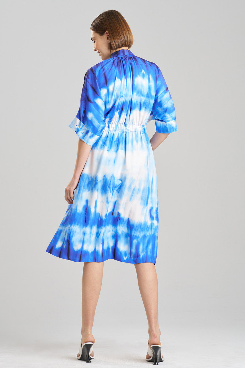 Santorini Printed Cotton Silk Belted Shirtdress