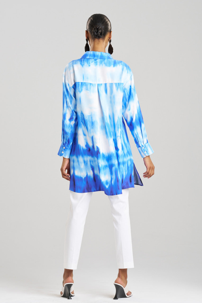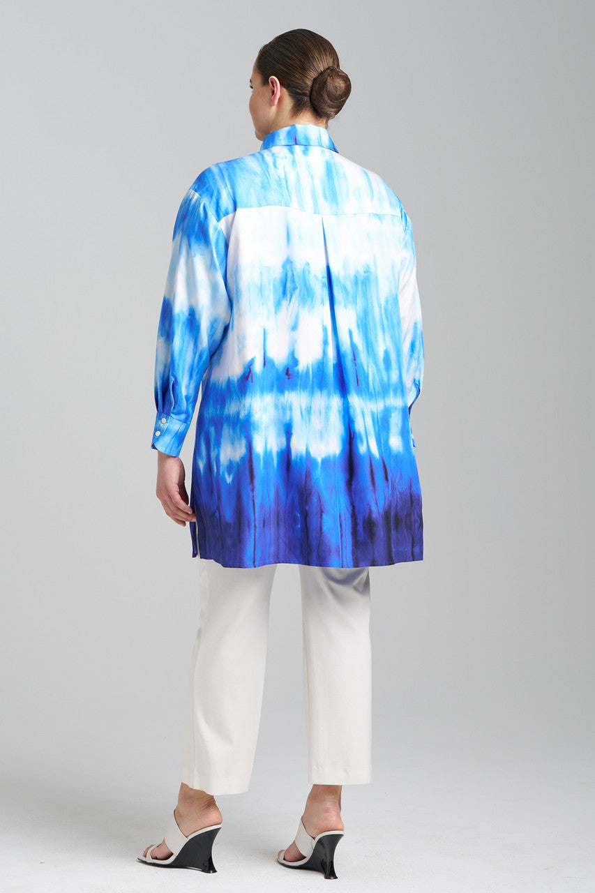 Santorini Printed Cotton Silk Oversized Shirt - majorelle