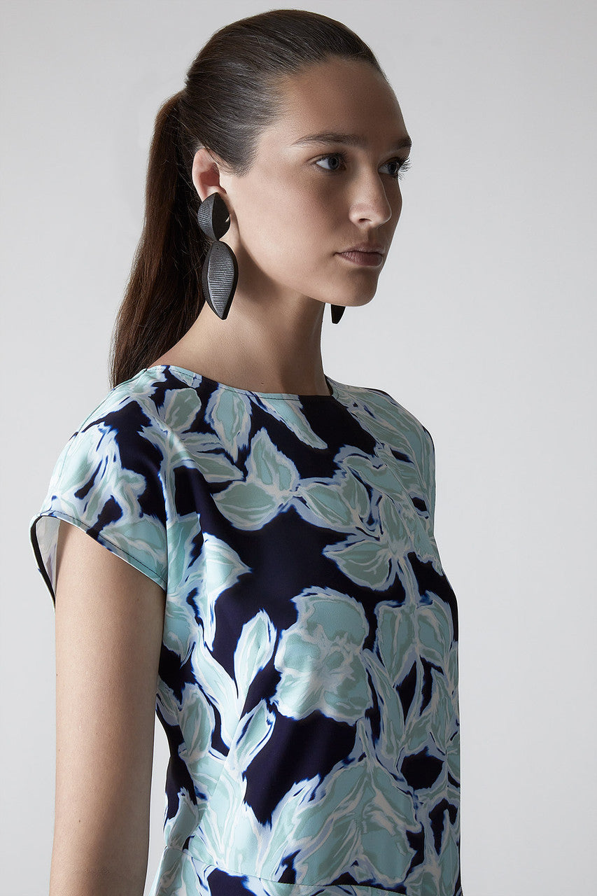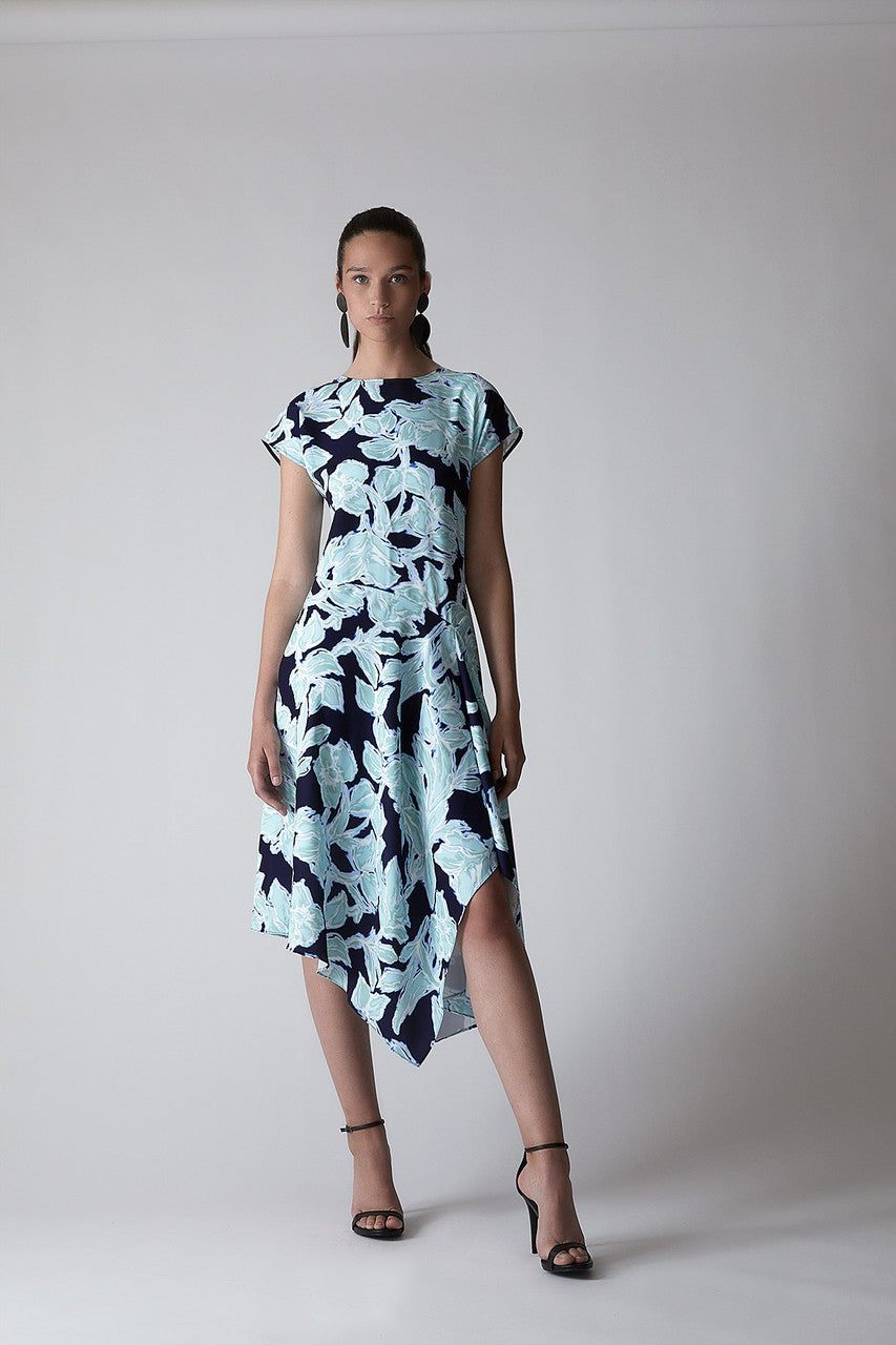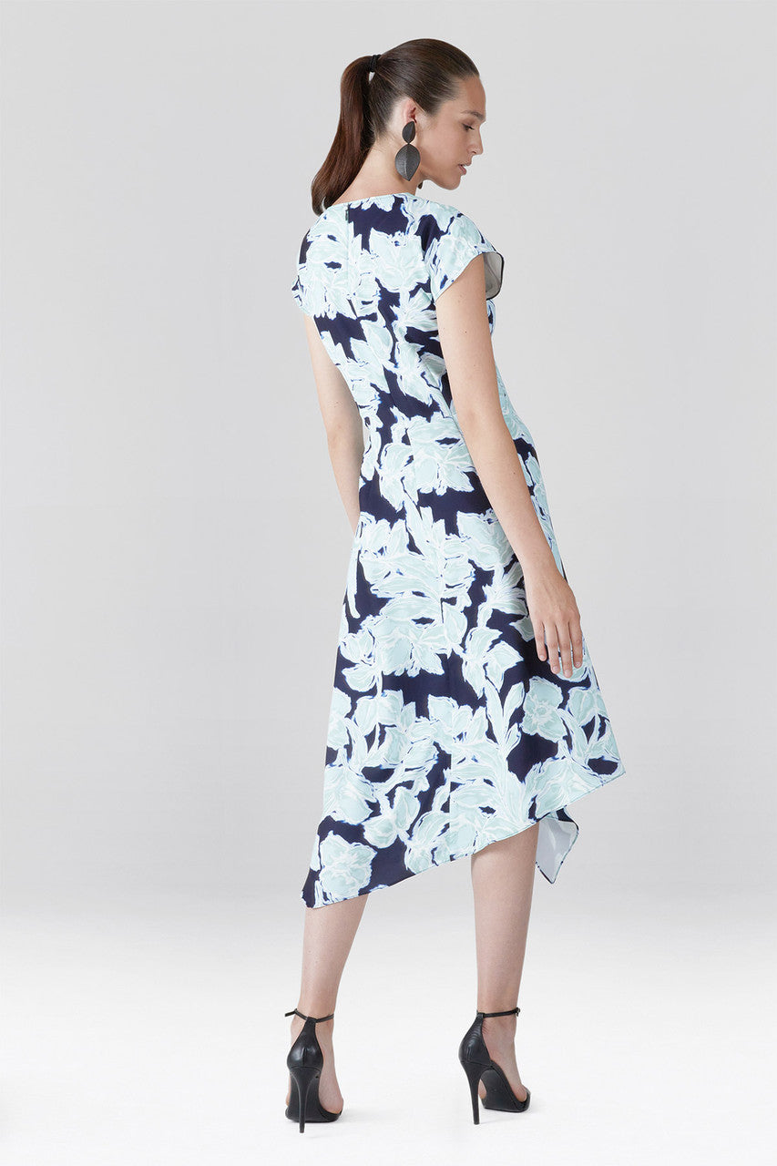 Shibori Floral - Fluid Crepe Draped Dress - shibori blue