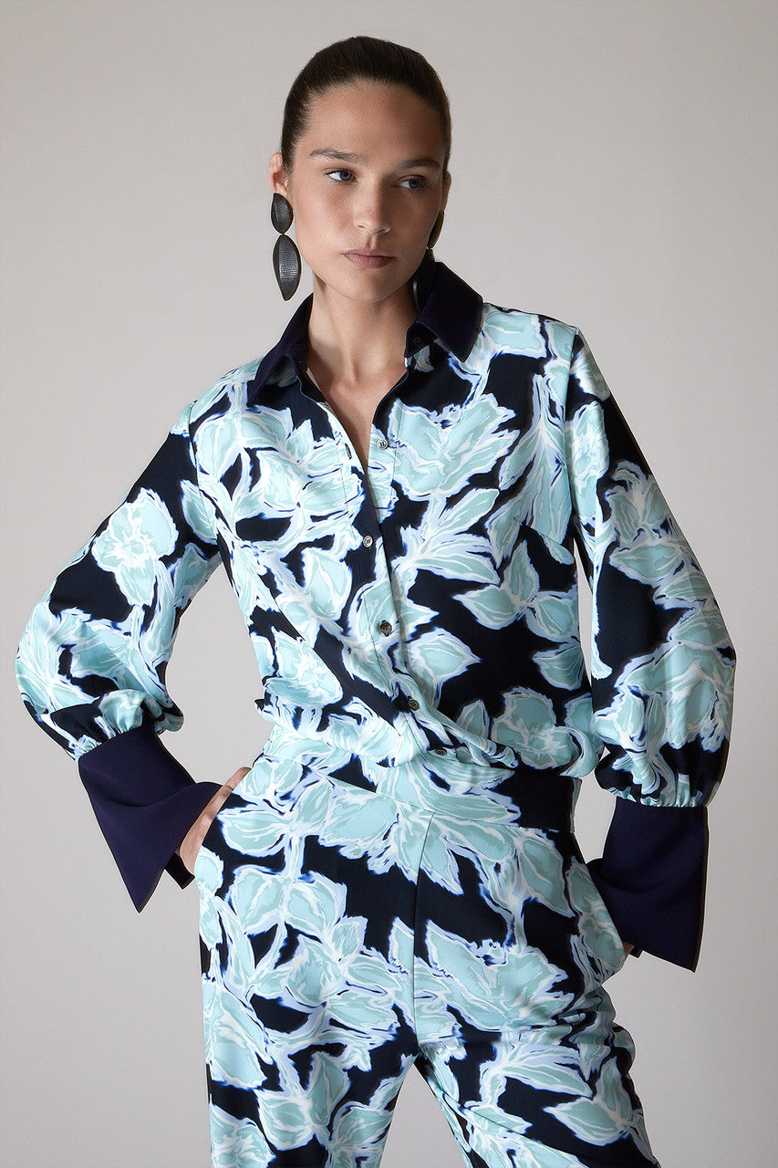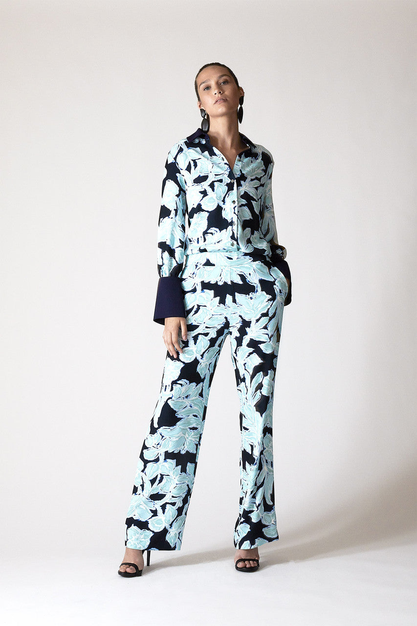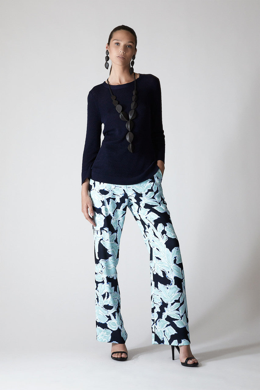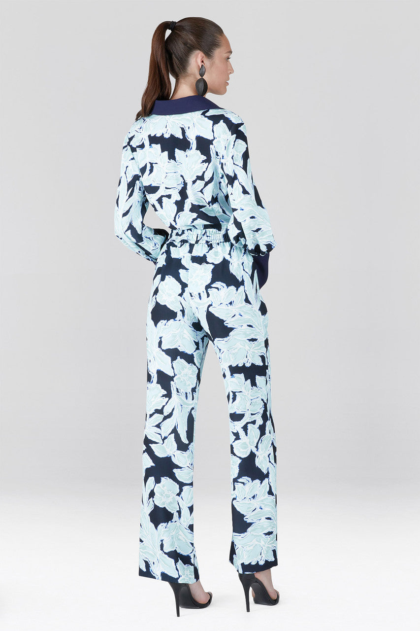 Shibori Floral - Fluid Crepe Pull On Pants - shibori blue