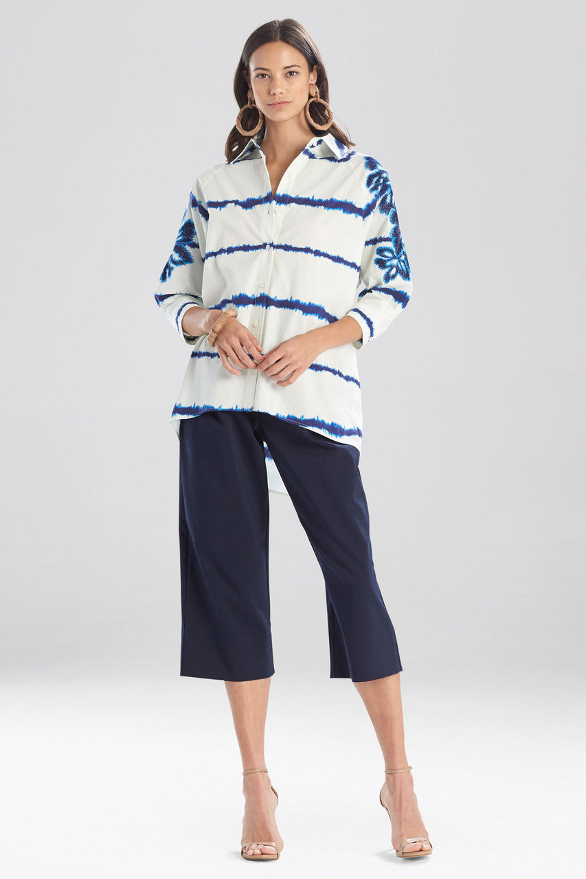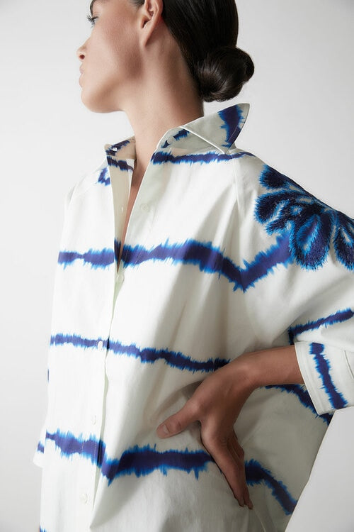 Shima Light Poplin Embroidered Cocoon Shirt - midnight navy